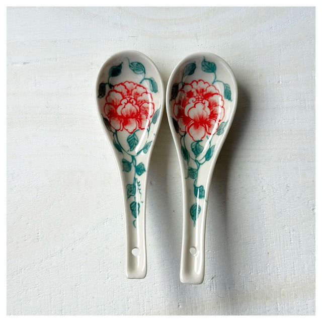 ベトナム雑貨 バッチャン焼き 牡丹柄のレンゲ2本セット