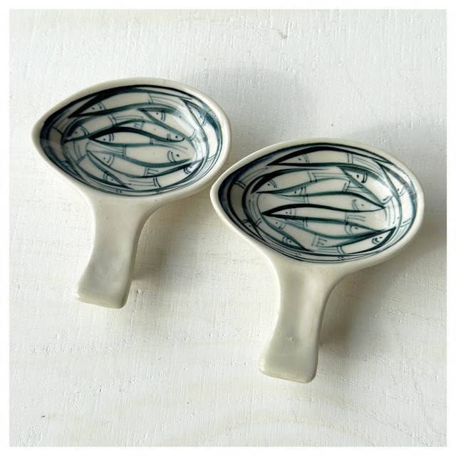 ベトナムのバッチャン焼き 魚柄のレンゲ箸置き2個