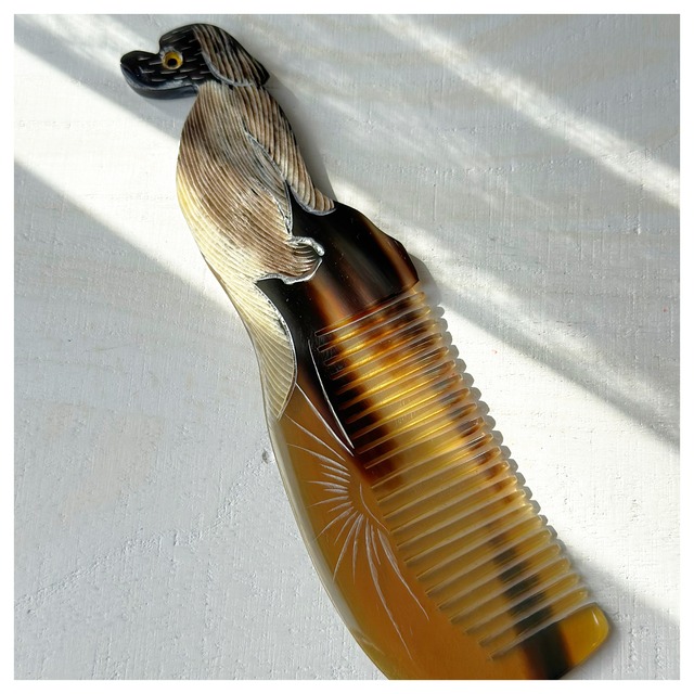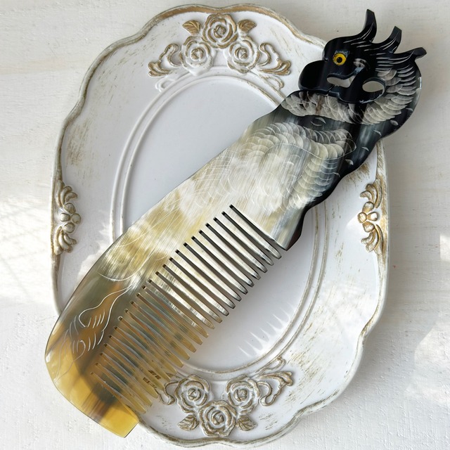 水牛角 バッファローホーン 龍の彫刻 櫛