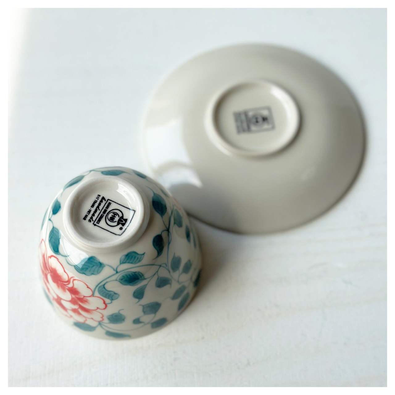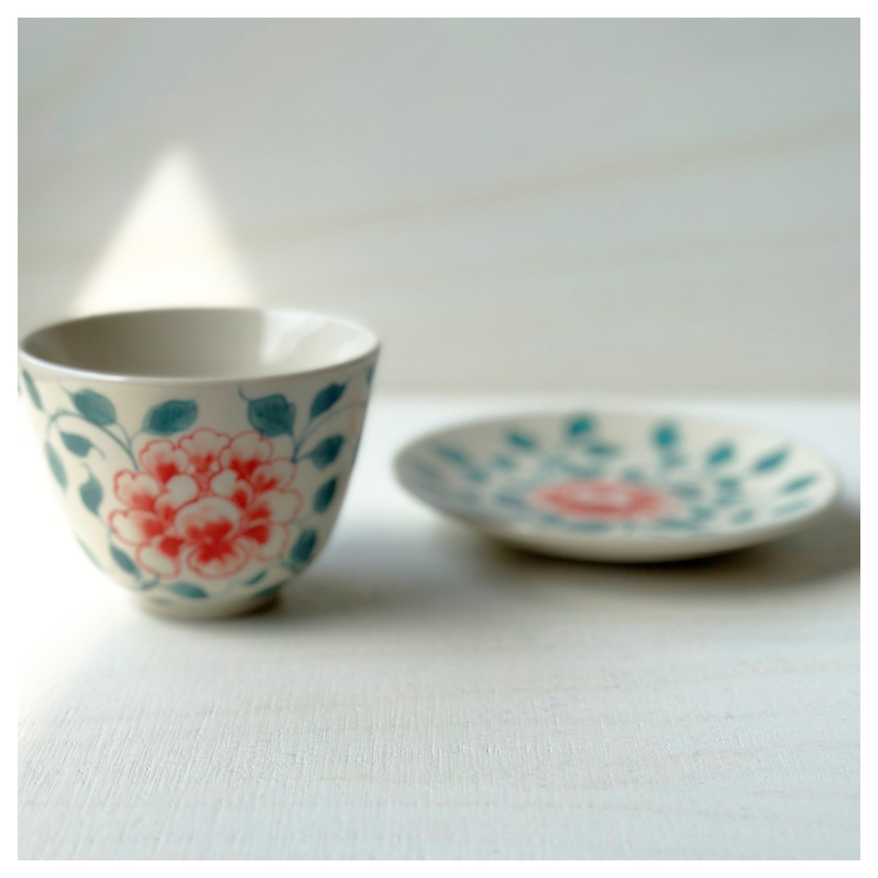 ベトナムのバッチャン焼き 牡丹絵のカップ&ソーサー