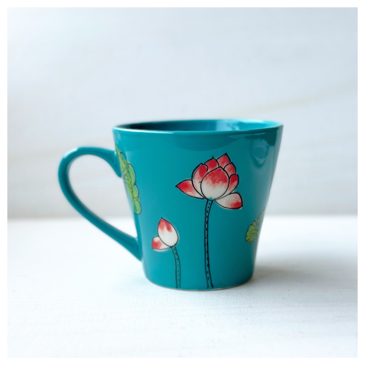 ベトナムのバッチャン焼き 蓮柄のマグカップ