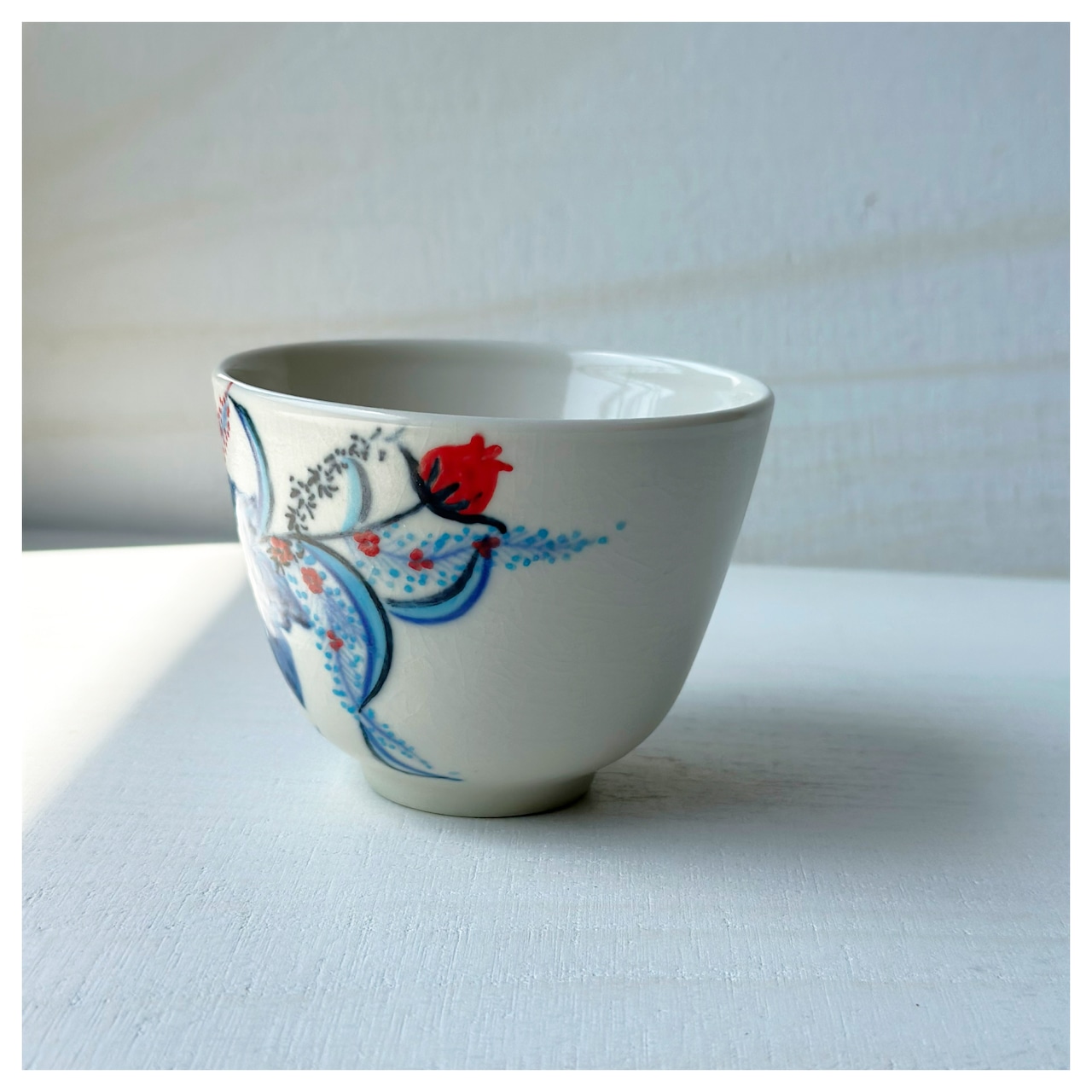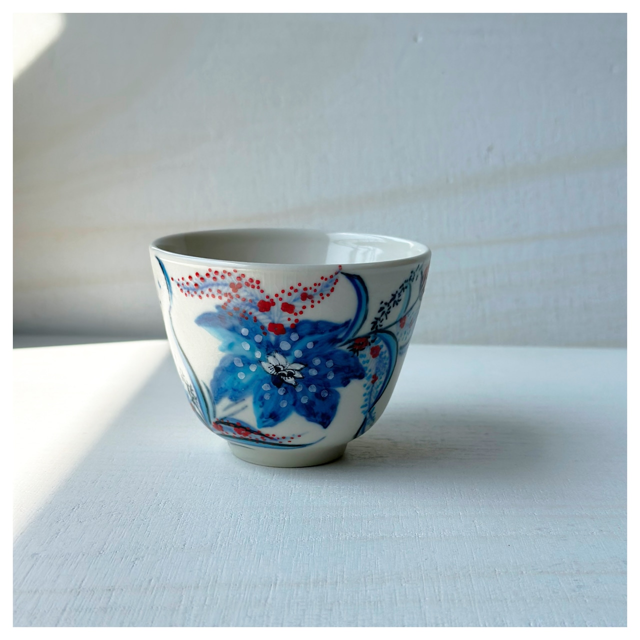 ベトナムのバッチャン焼き 花柄の湯呑み