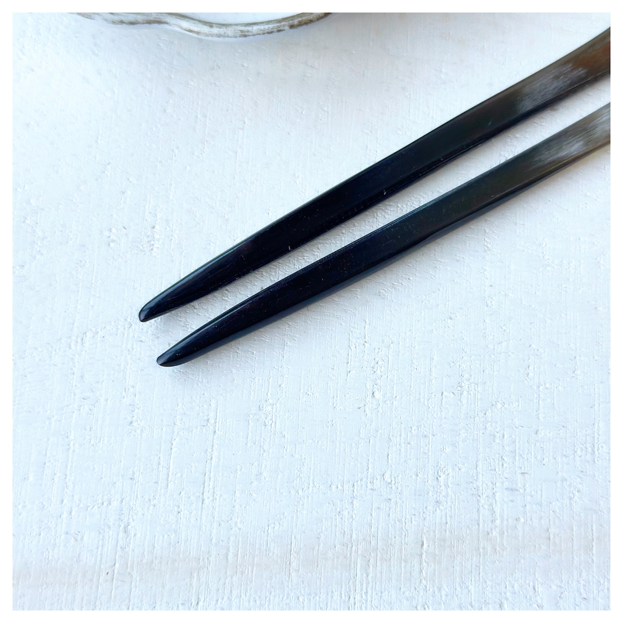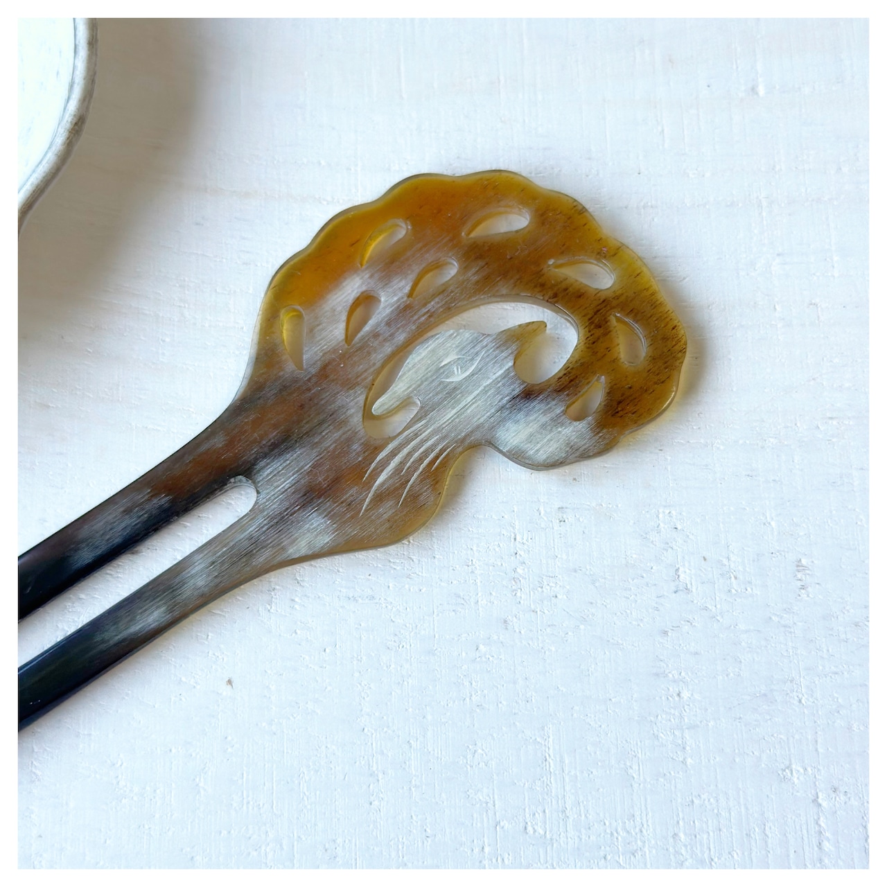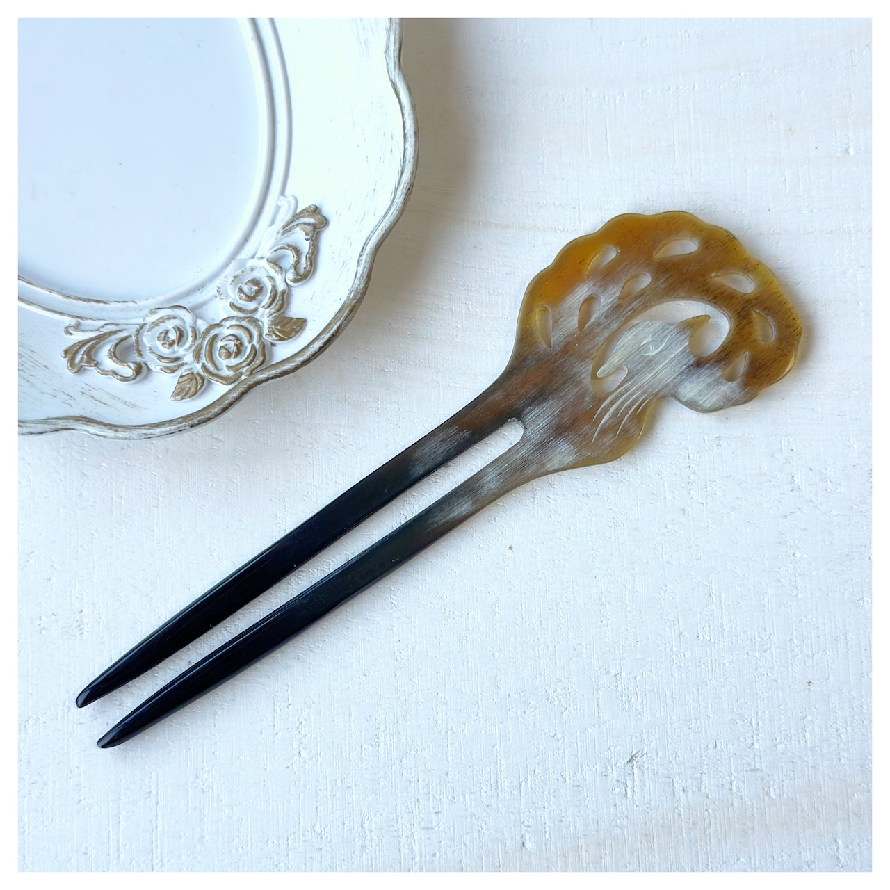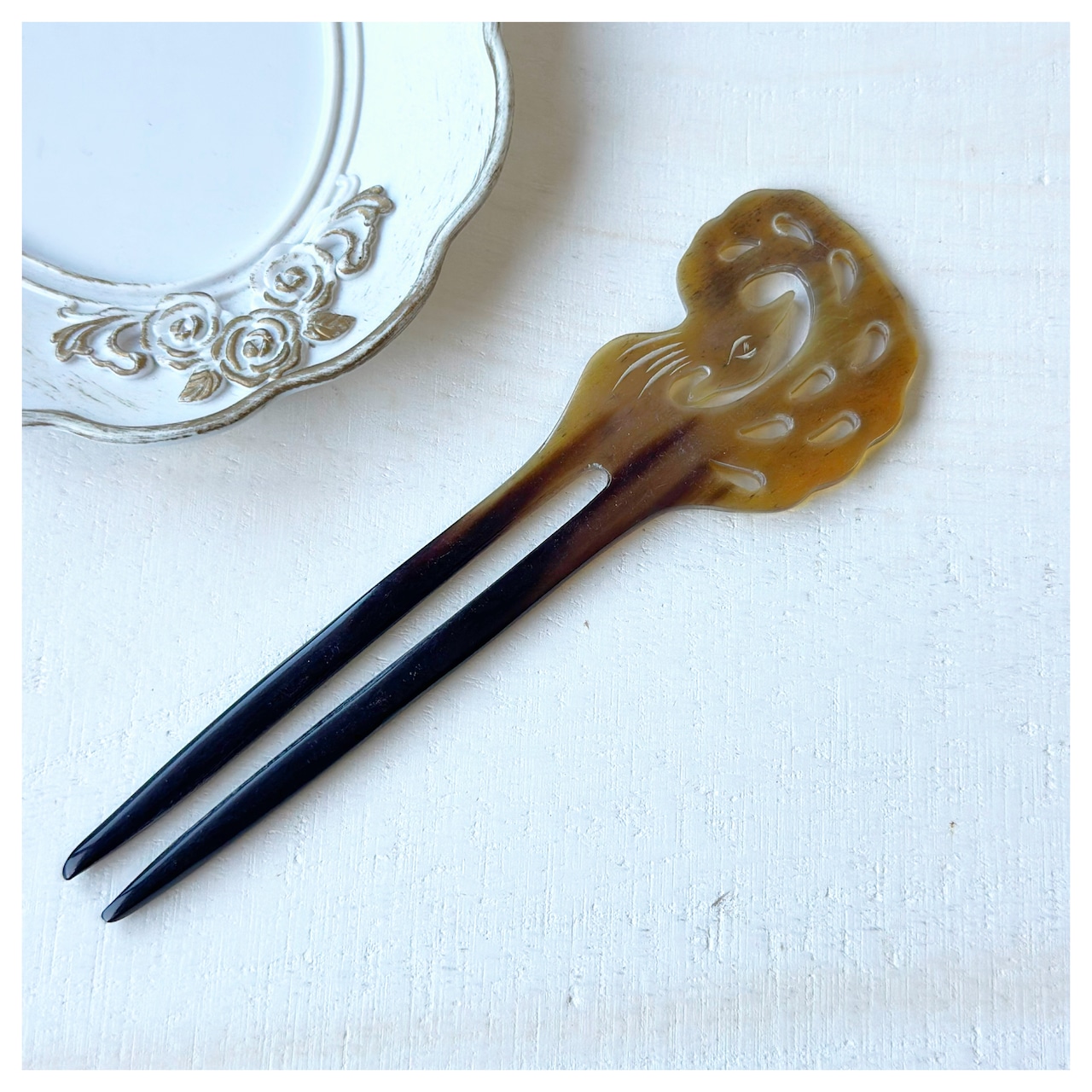 水牛角 バッファローホーン 鳳凰の彫刻 二本足の簪