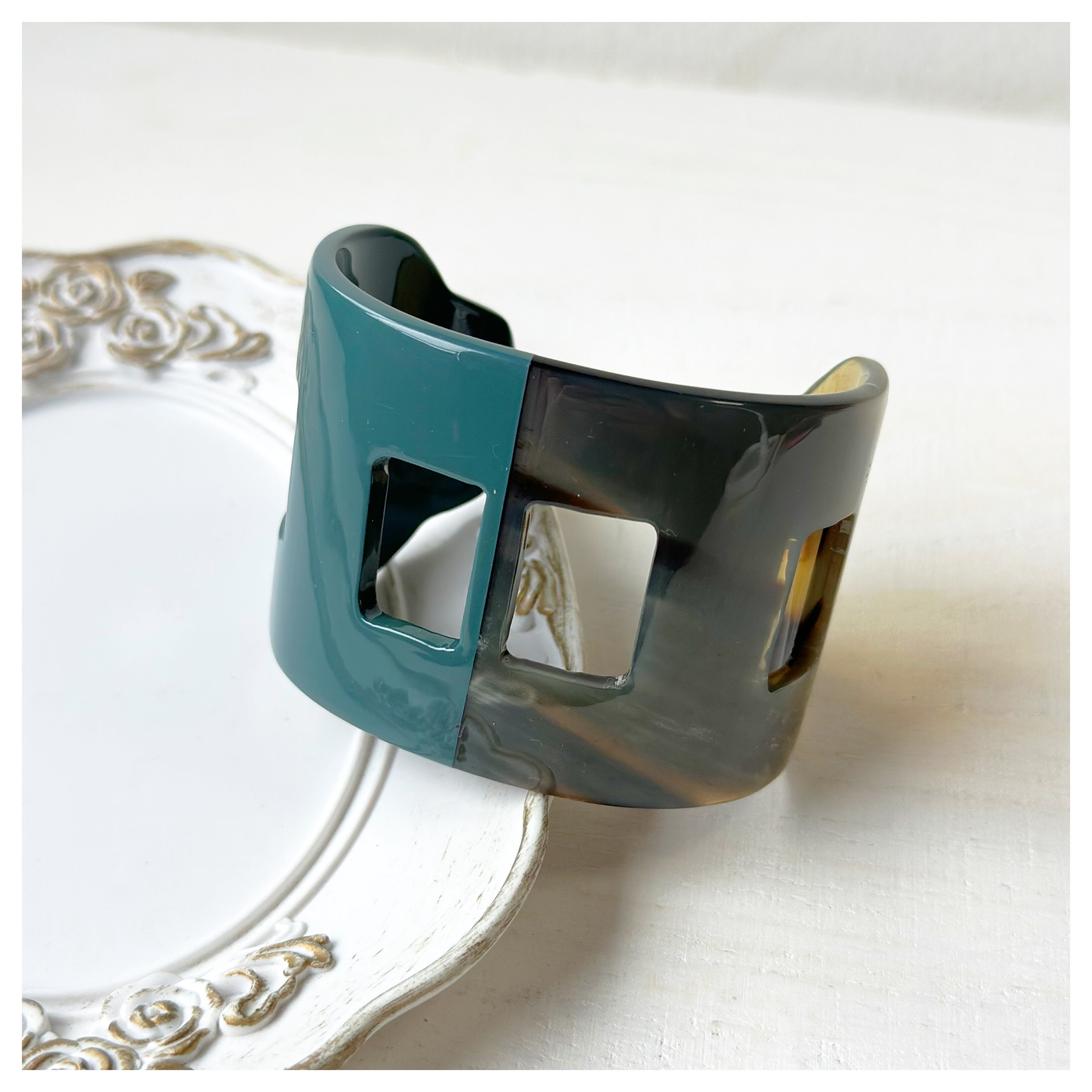 水牛ならではの自然な質感と色合いが魅力的なバングル。軽いのもポイント。