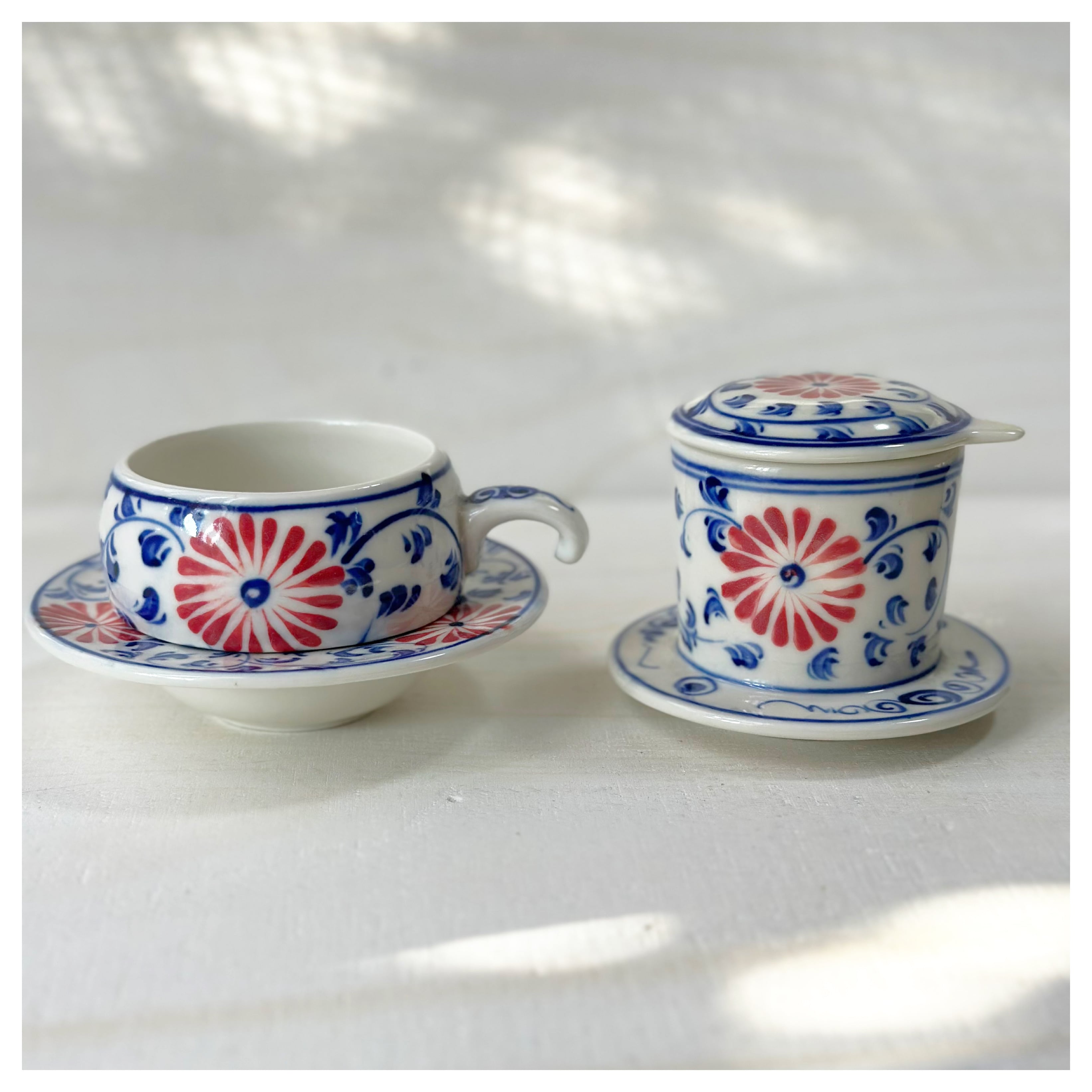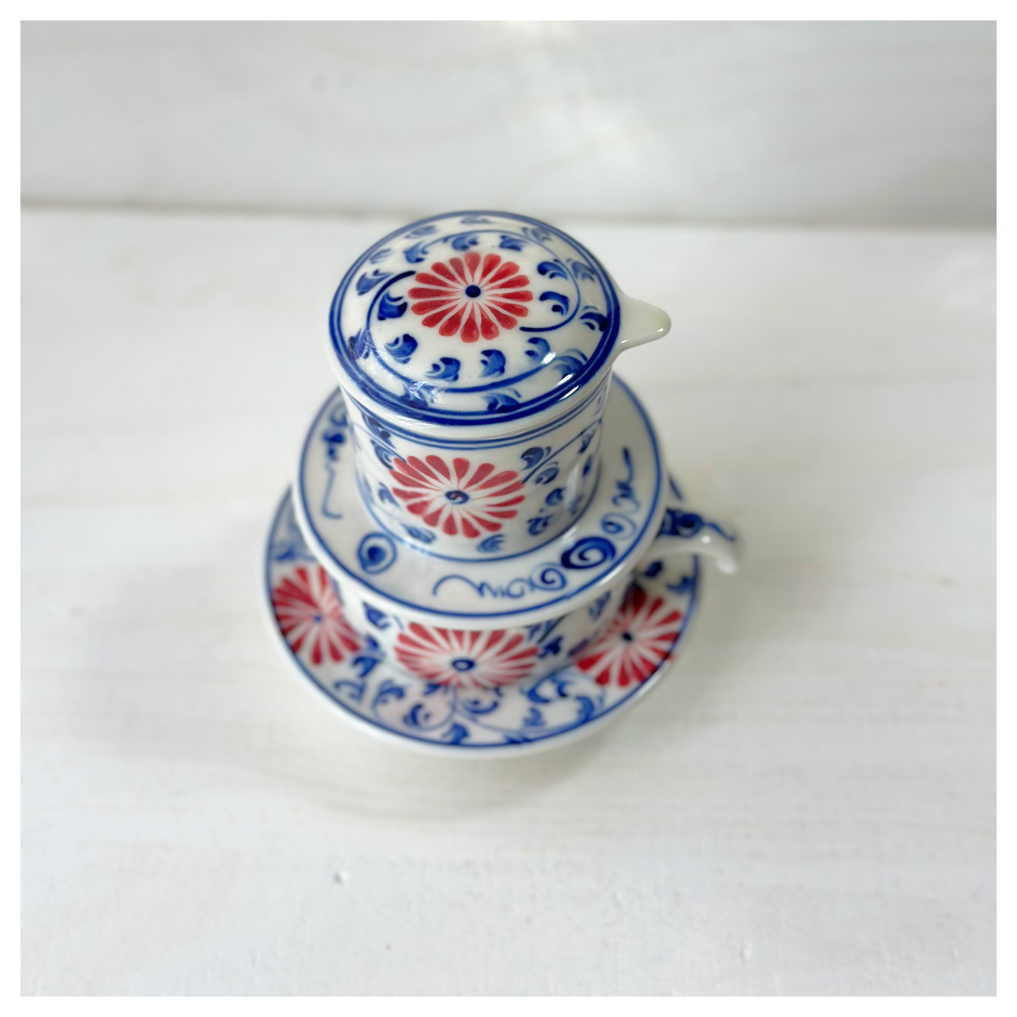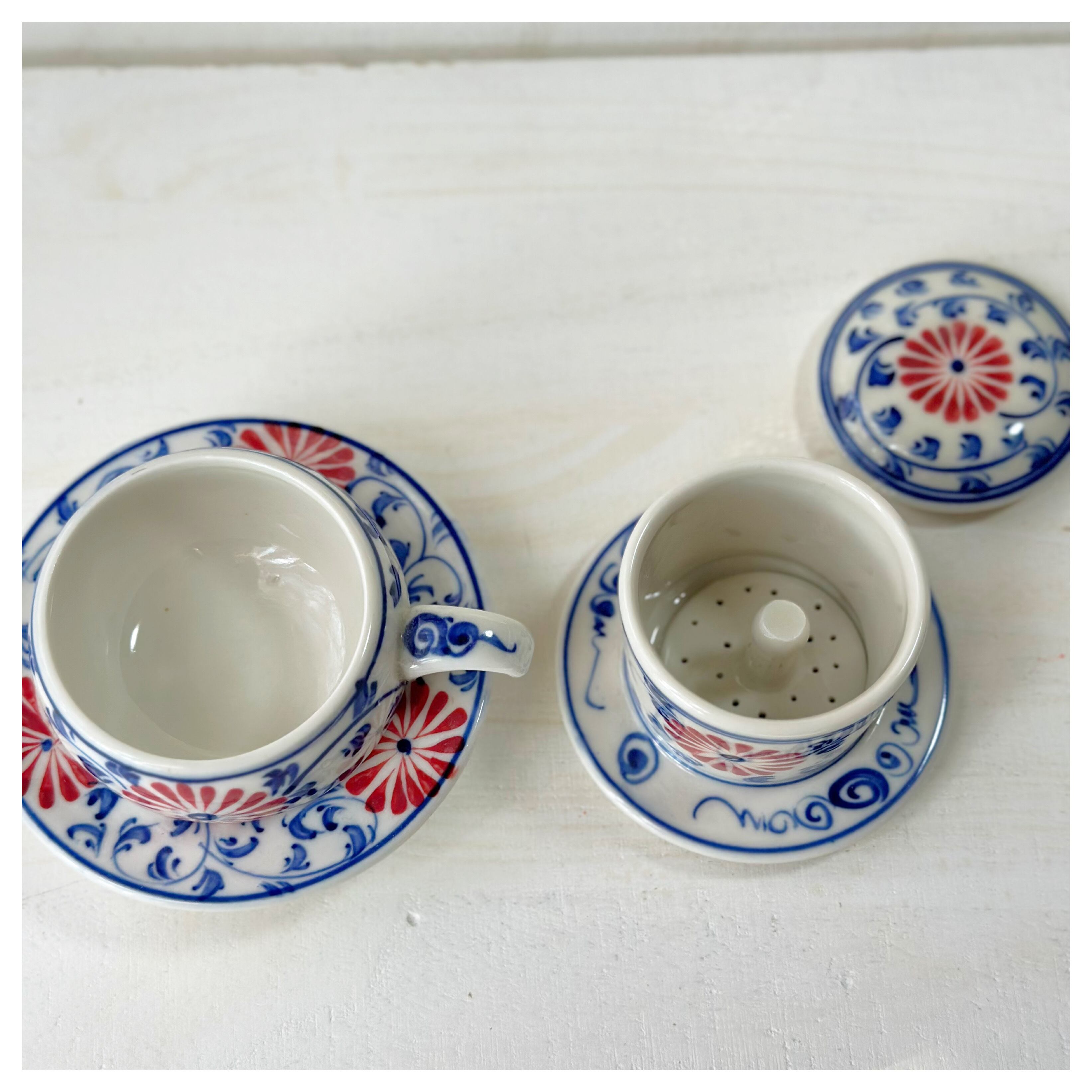 ベトナムのバッチャン焼き 菊柄ドリッパー付きカップ&ソーサー