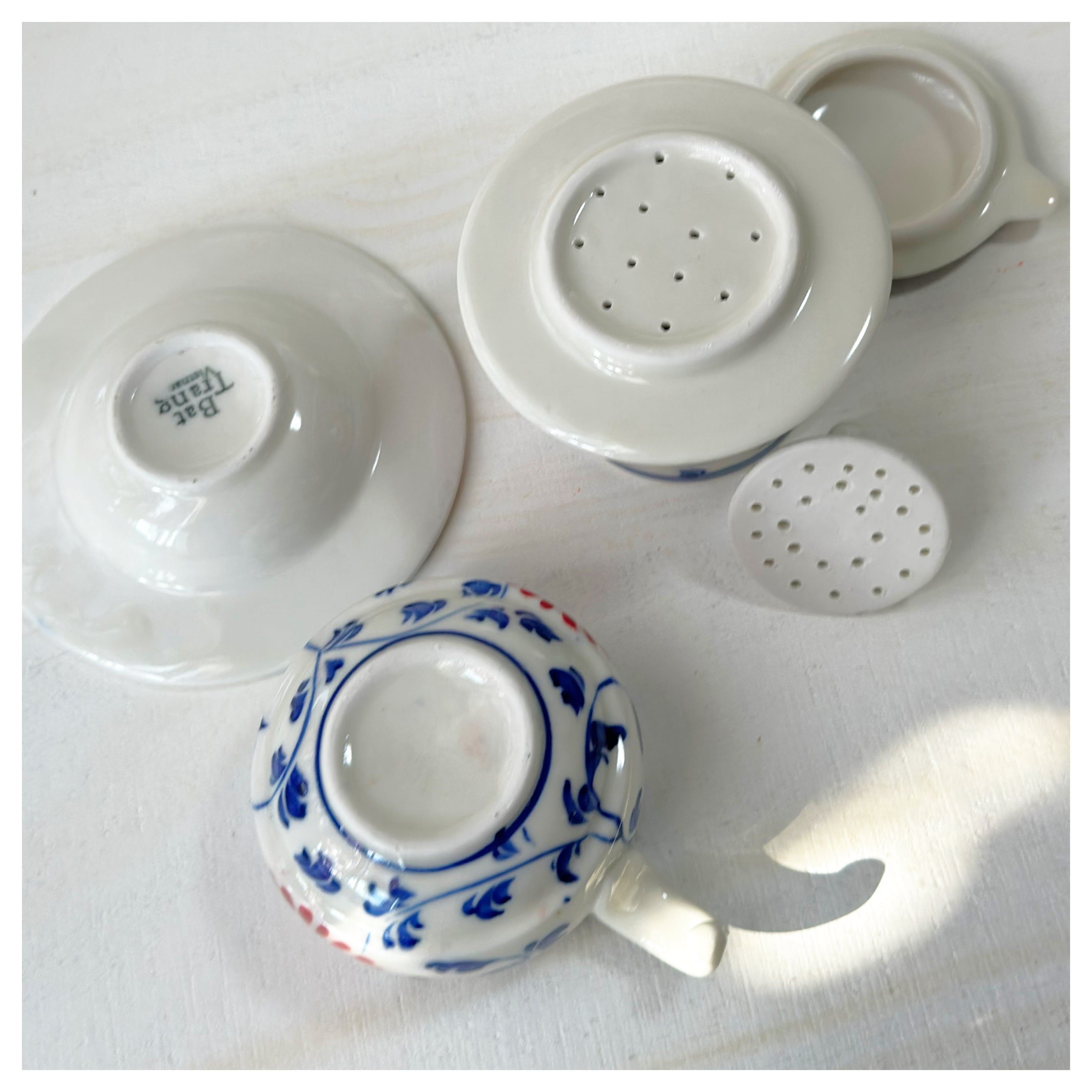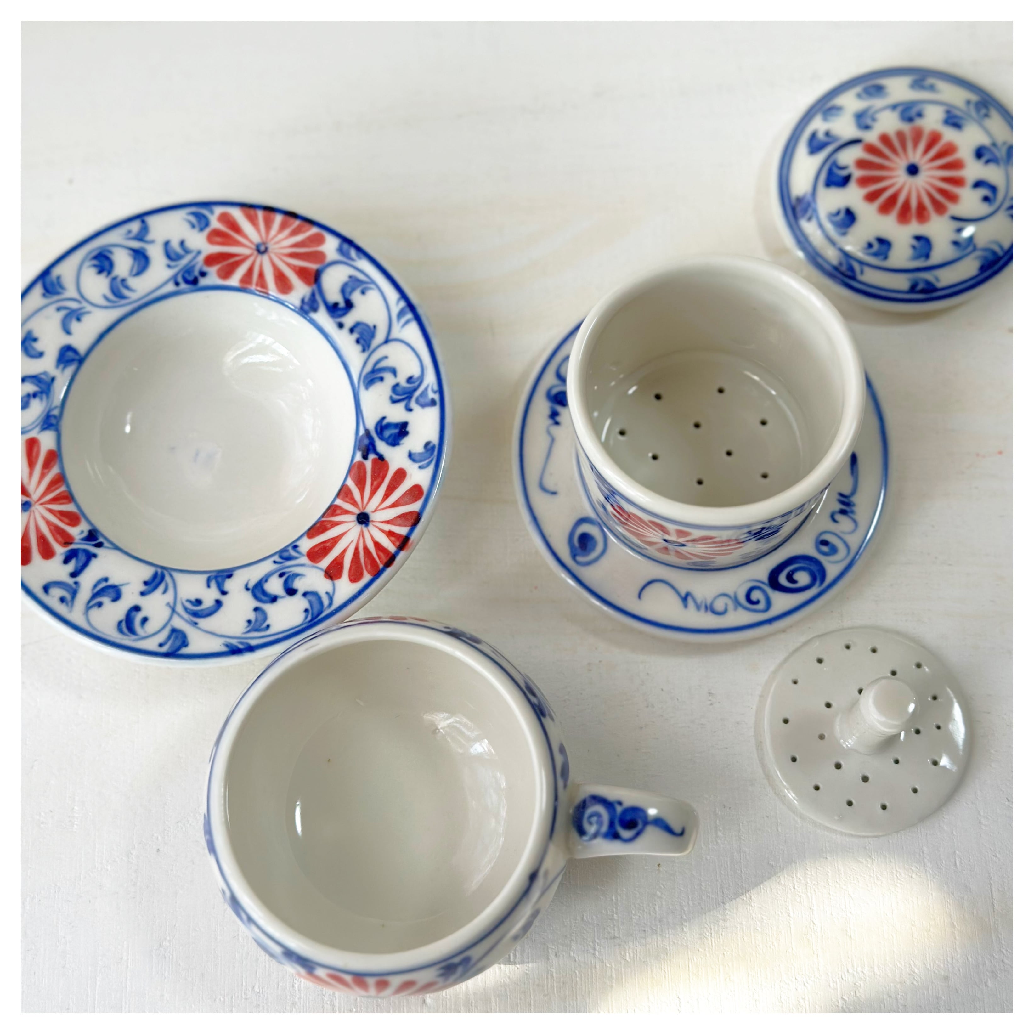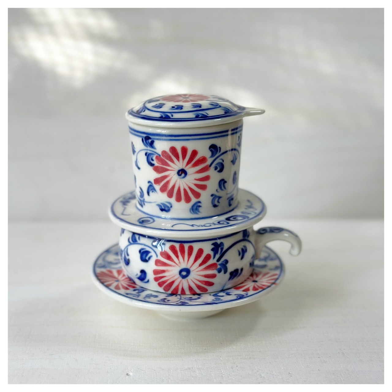 ベトナムのバッチャン焼き 菊柄ドリッパー付きカップ&ソーサー