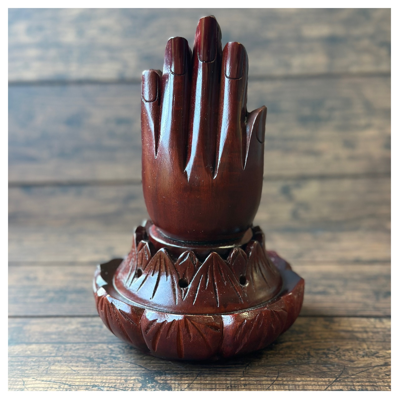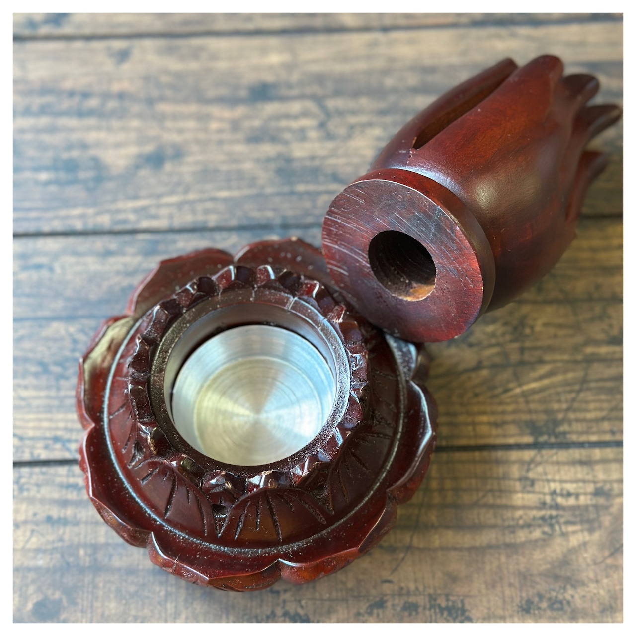 蓮の花の台にお釈迦様の合わさった手の香炉です。
