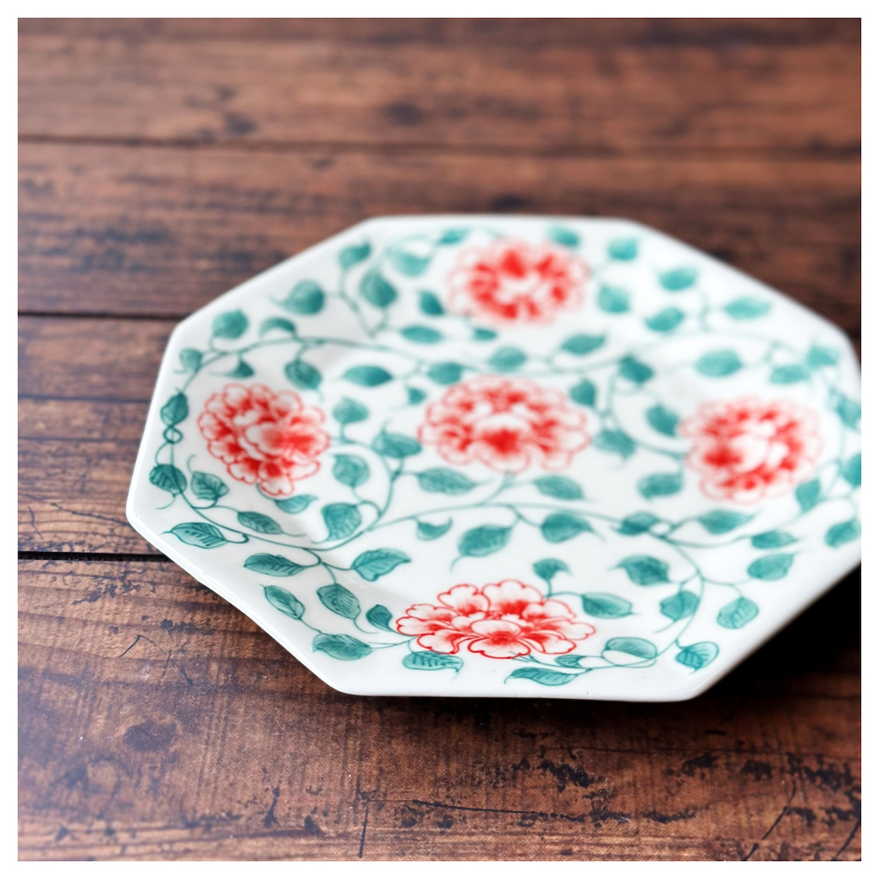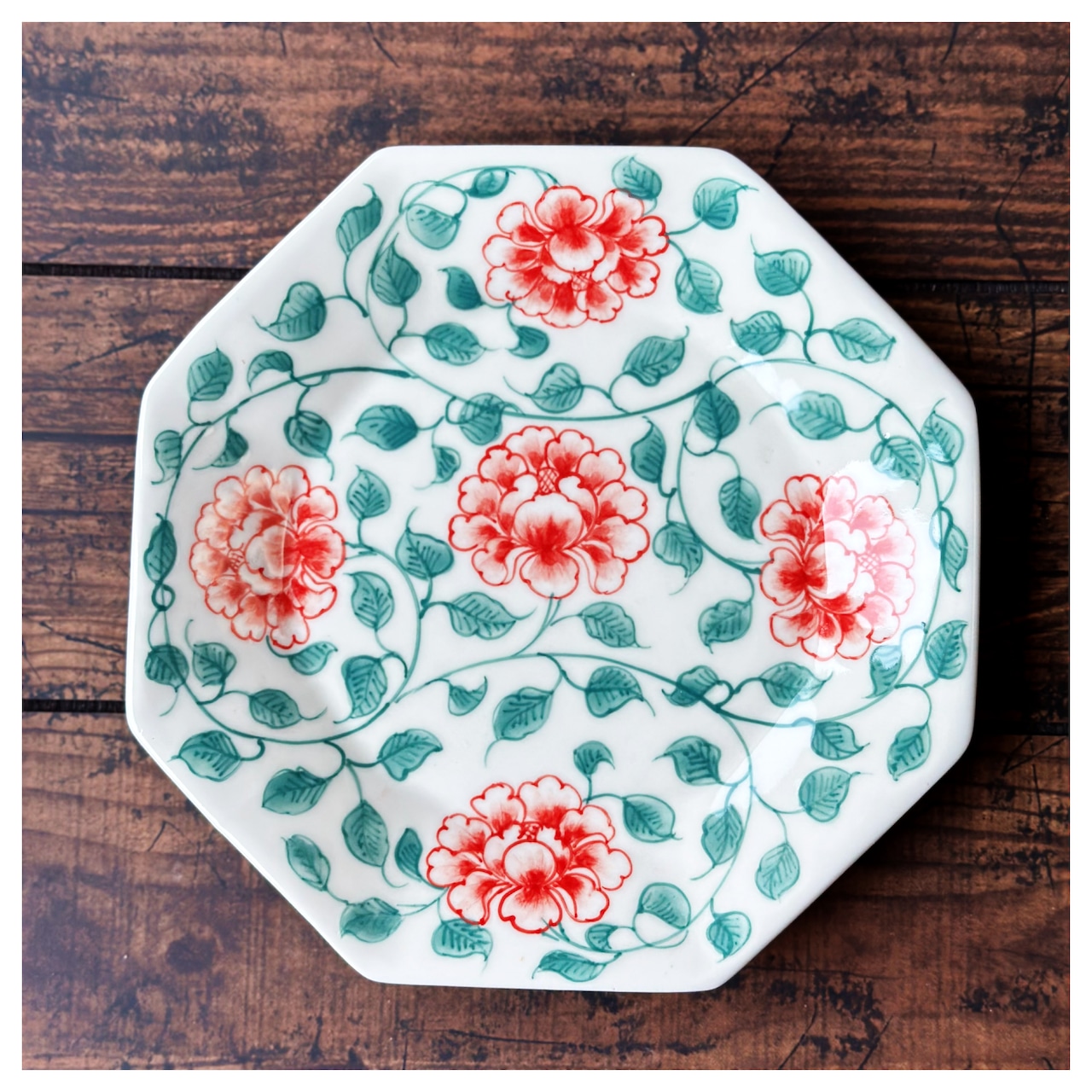 ベトナムのバッチャン焼き 牡丹柄 八角皿