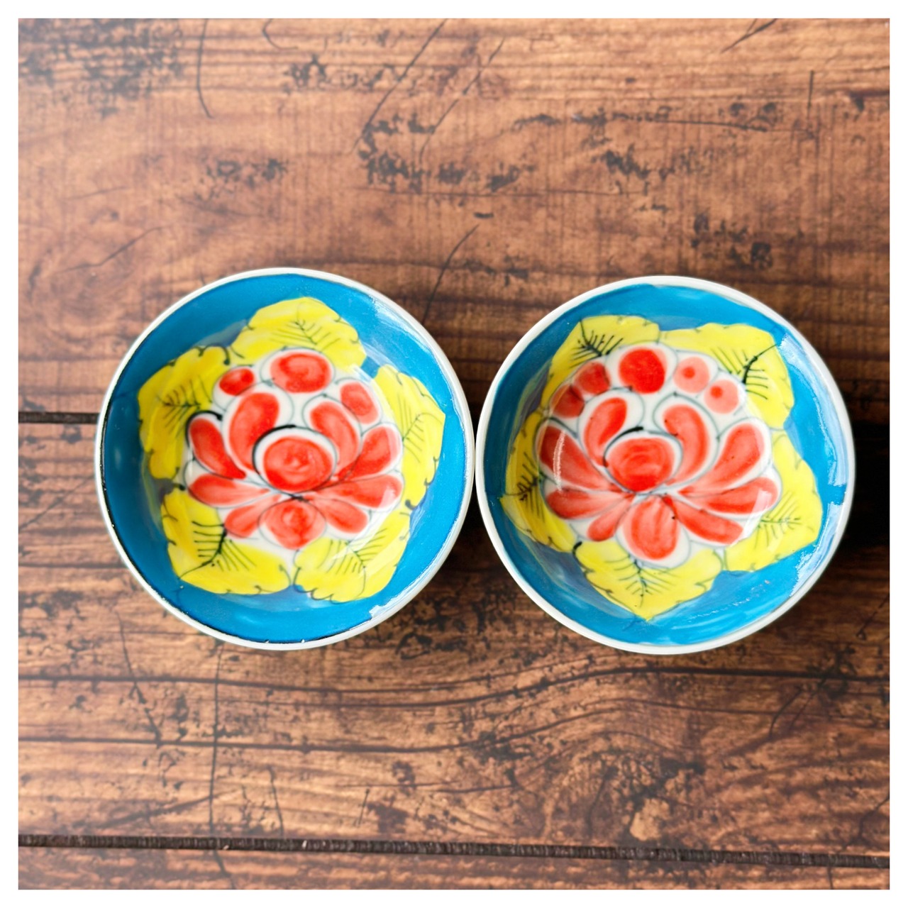 ベトナムのバッチャン焼き 蓮柄 豆皿2枚セット