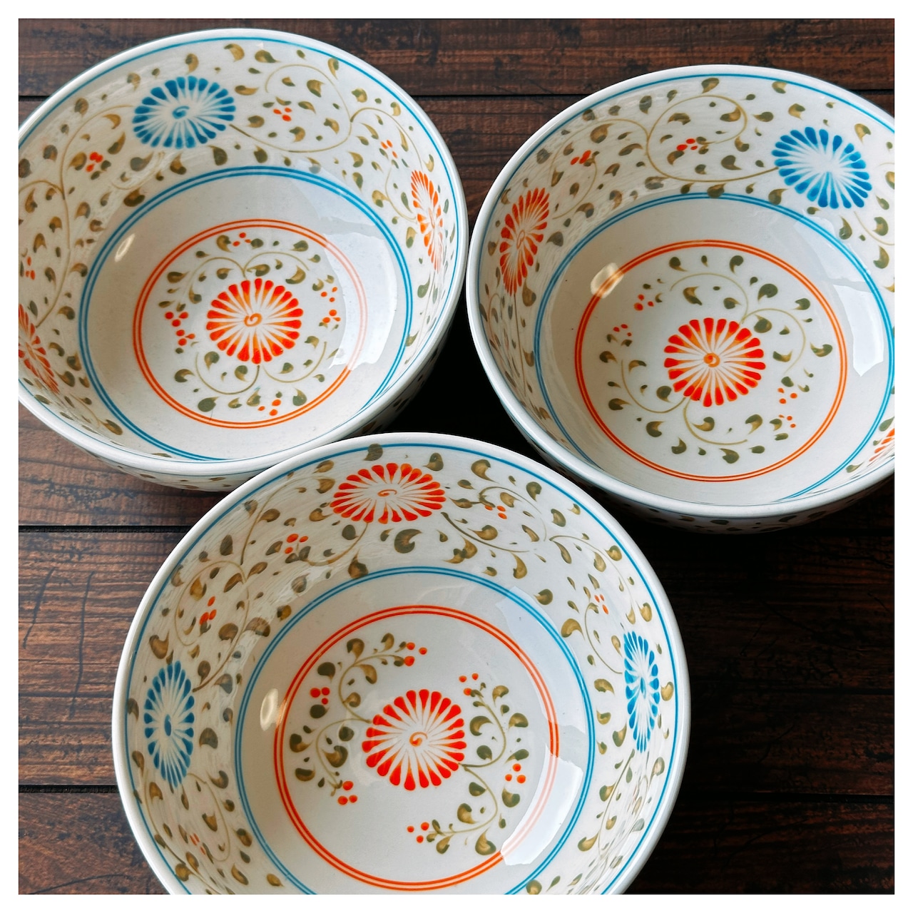 ベトナムのバッチャン焼き 菊柄 丼 3枚セット