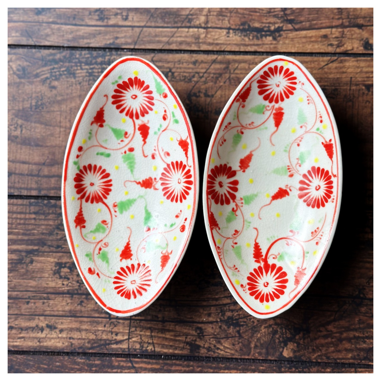 ベトナムのバッチャン焼き オールドバッチャン 菊柄 オーバルボウル2枚セット