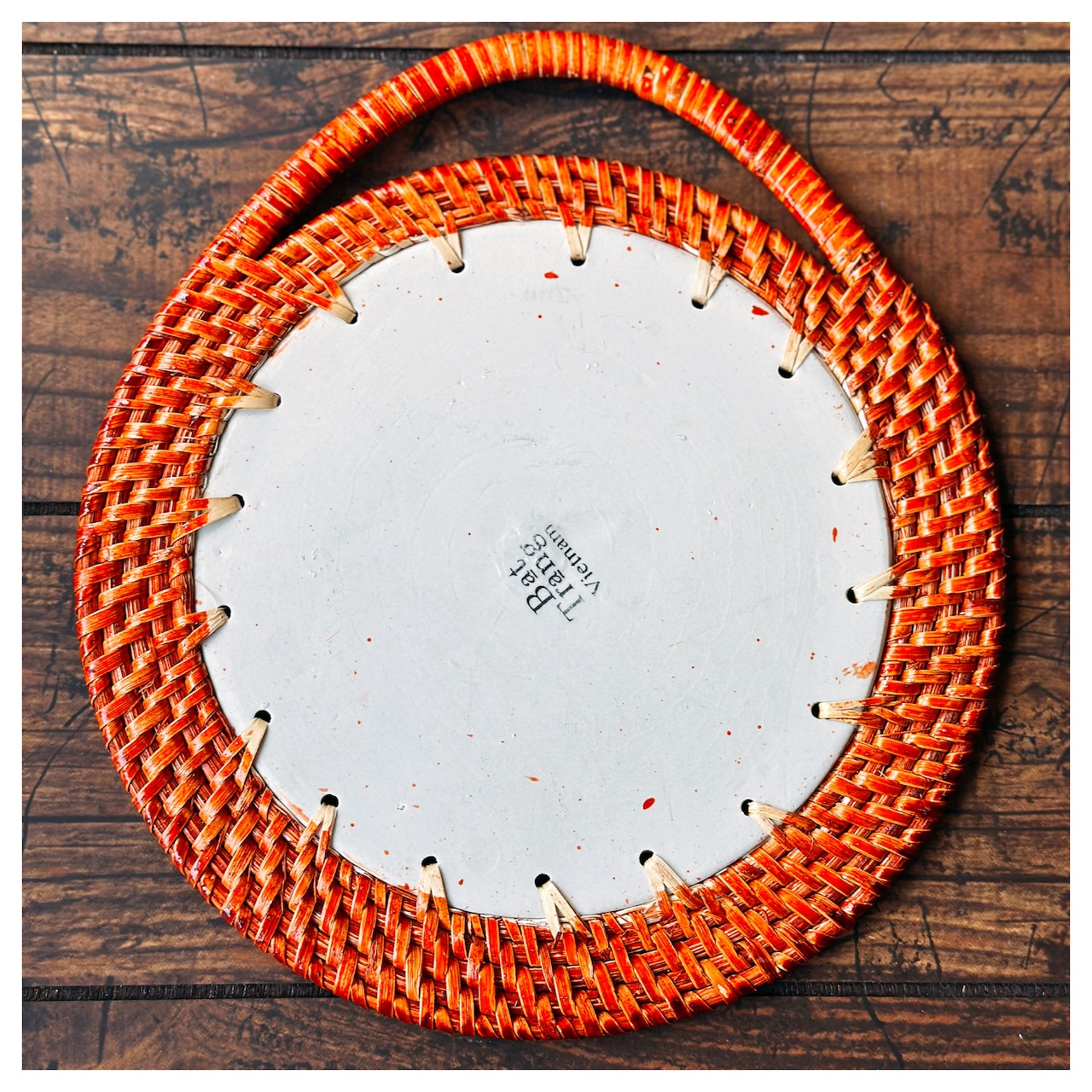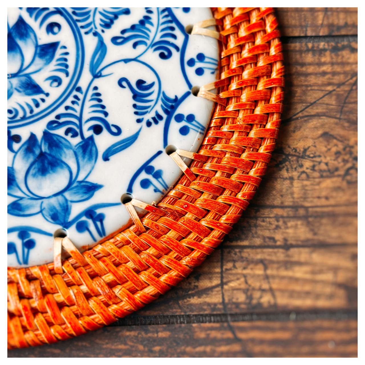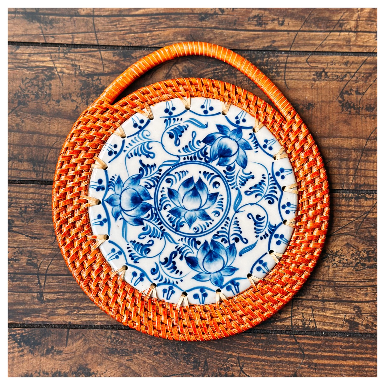 ベトナムのバッチャン焼き 蓮柄の鍋敷き 壁飾り