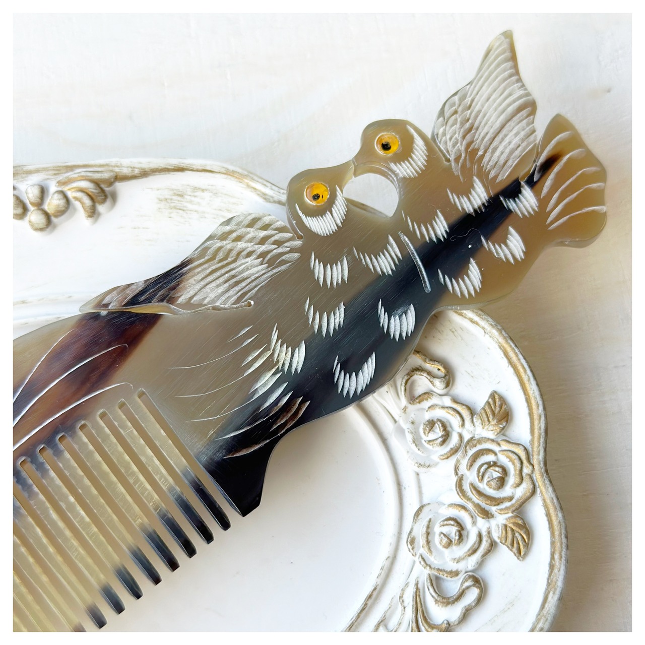 水牛角 バッファローホーン 鳩の彫刻の櫛