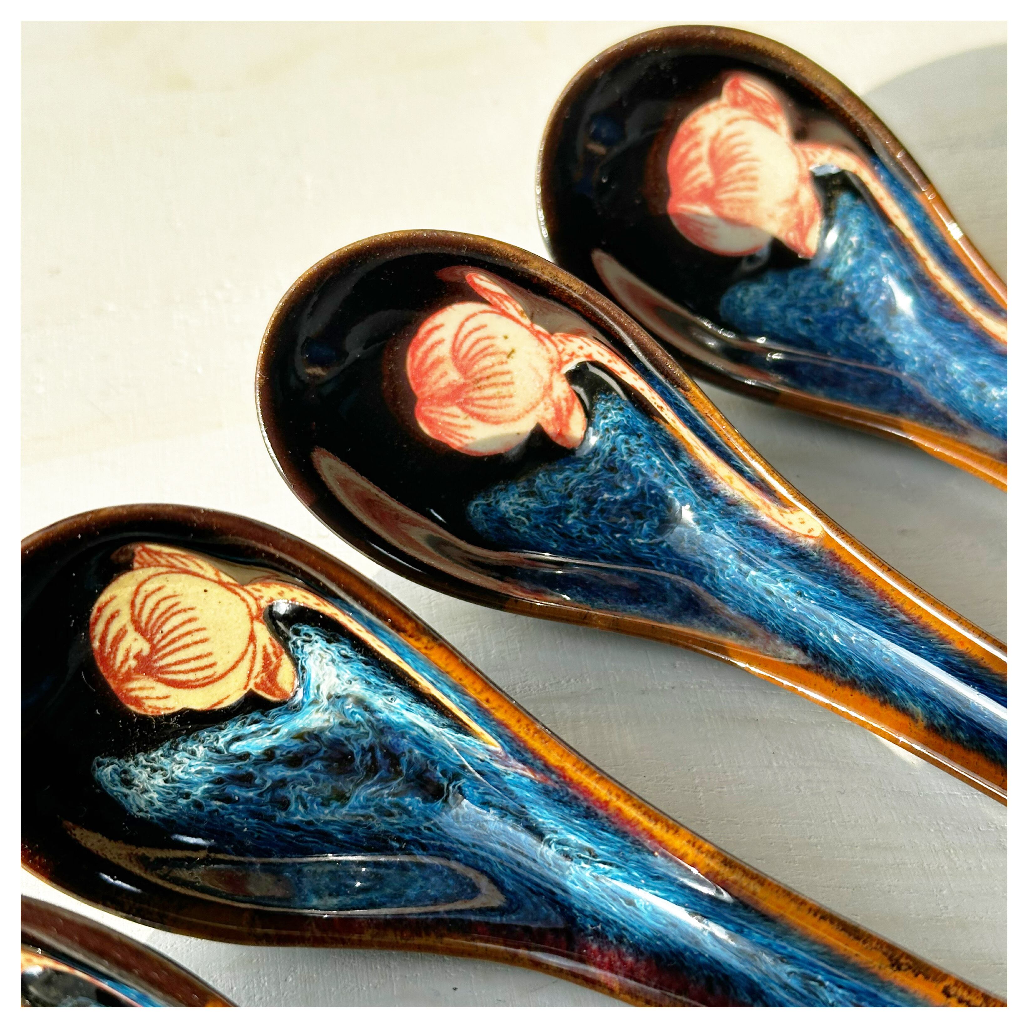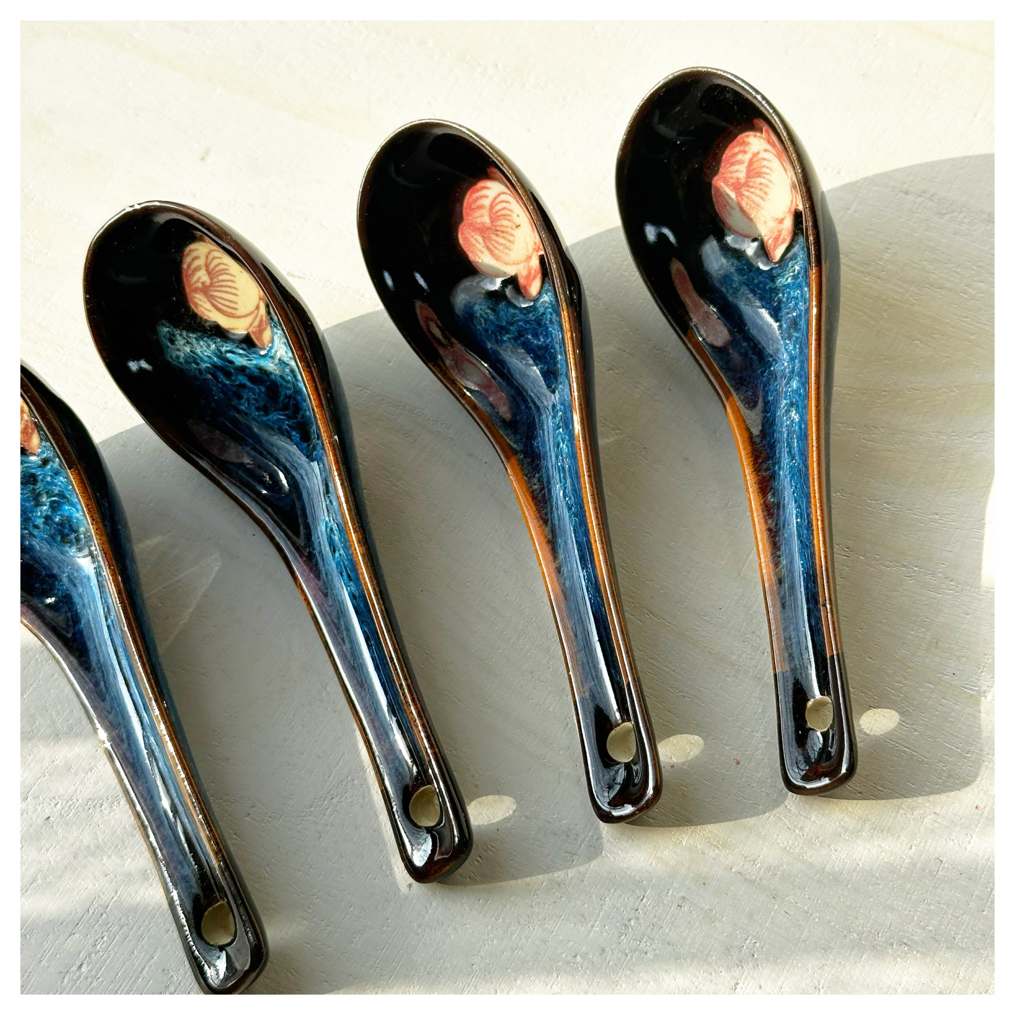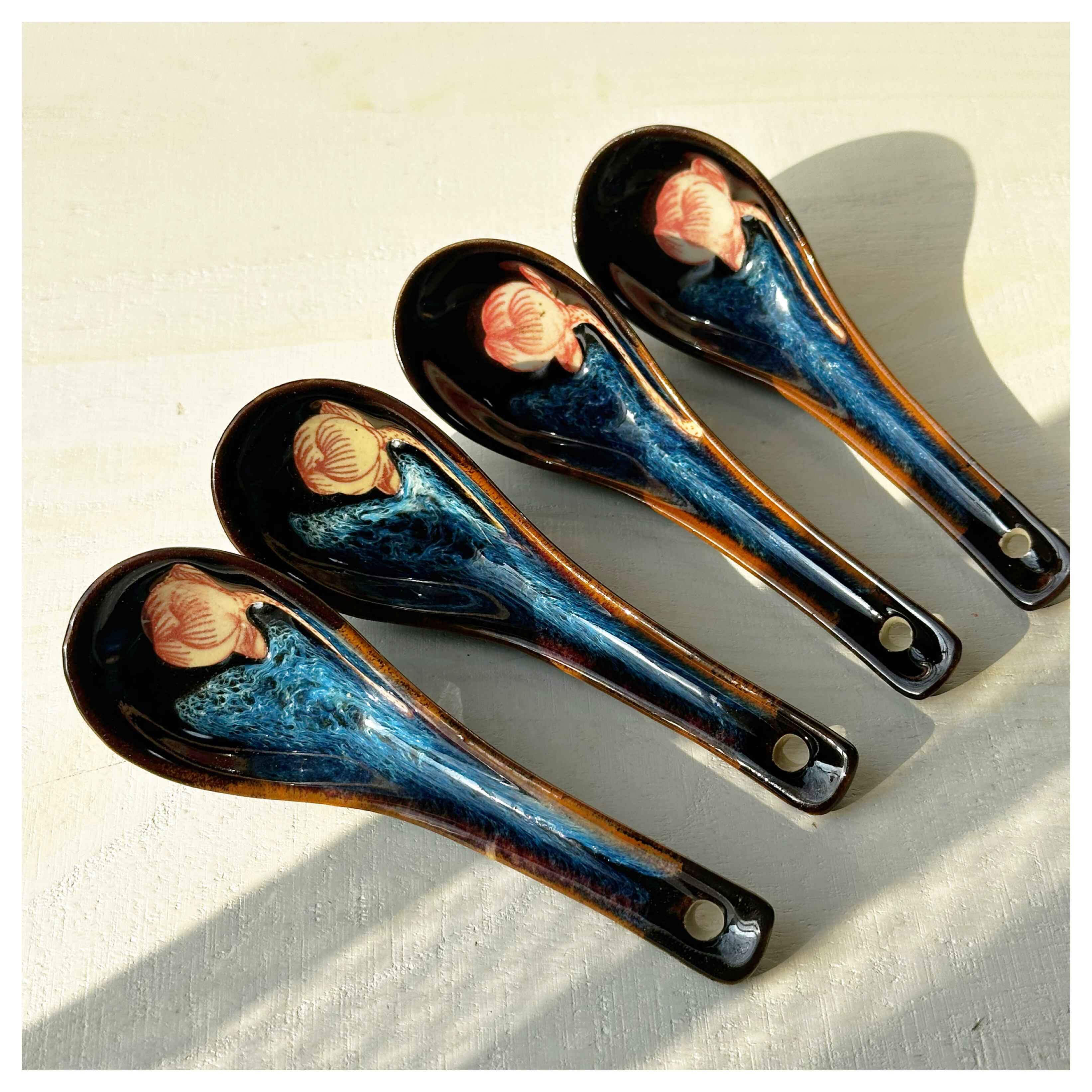 ベトナム バッチャン焼き 蓮柄 レンゲ4本