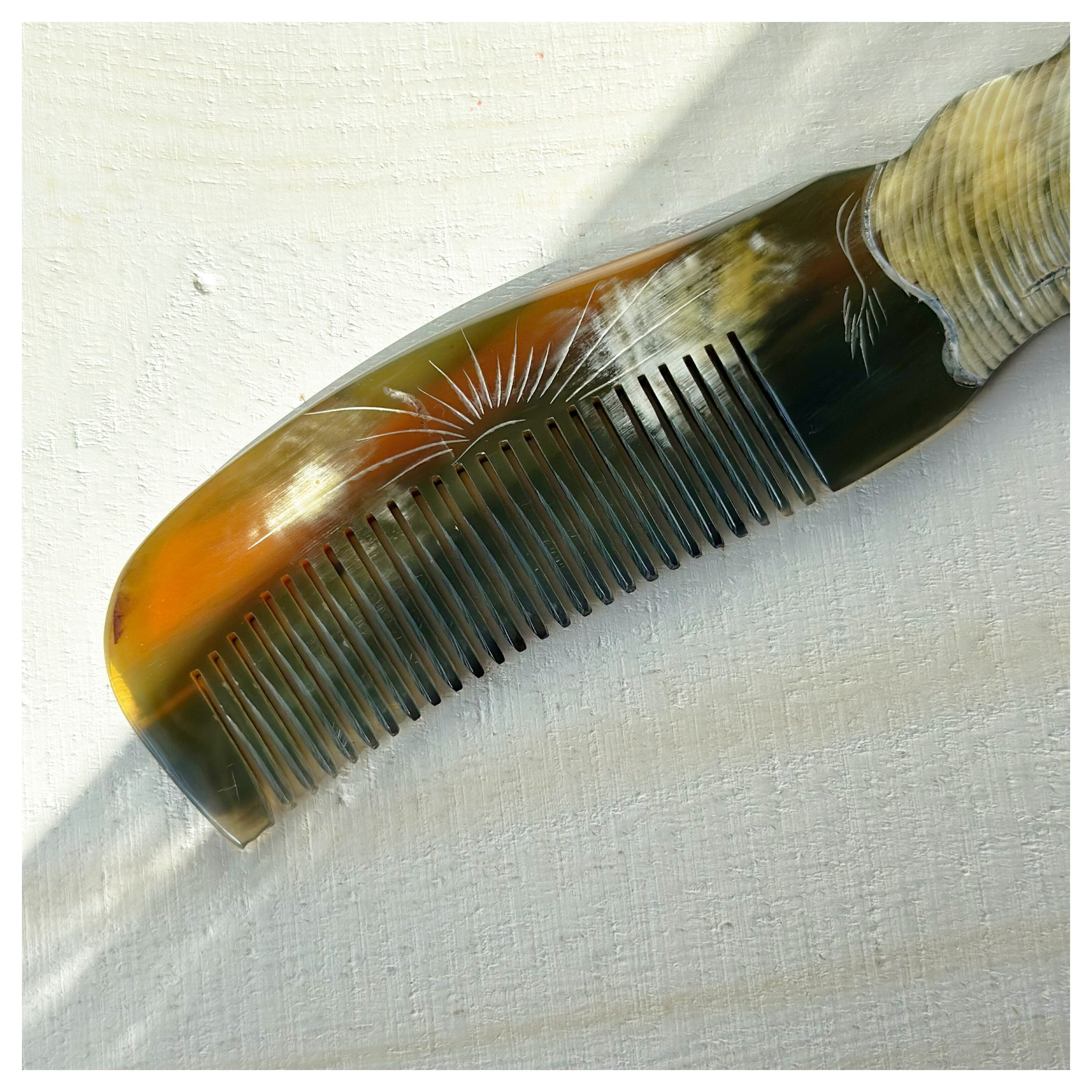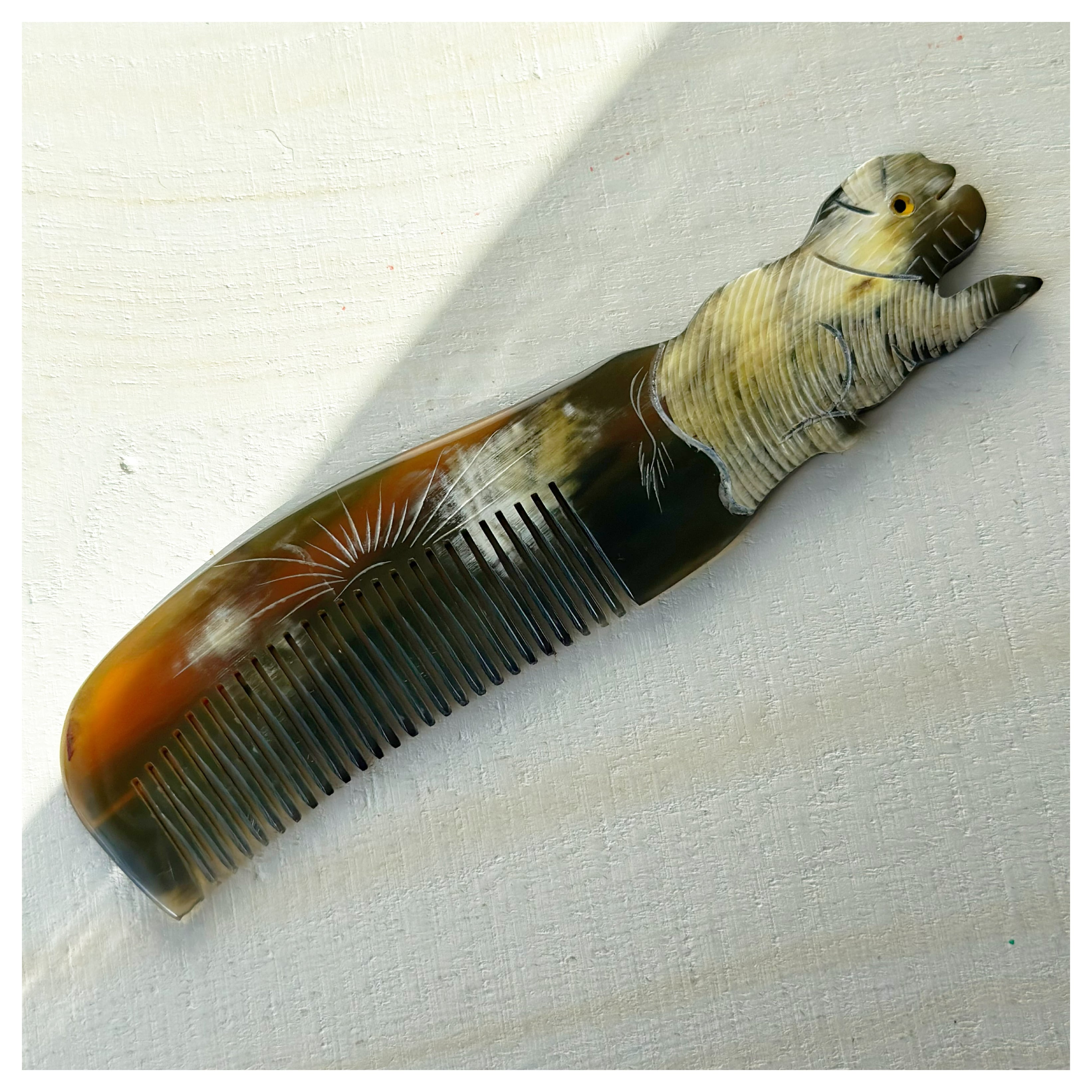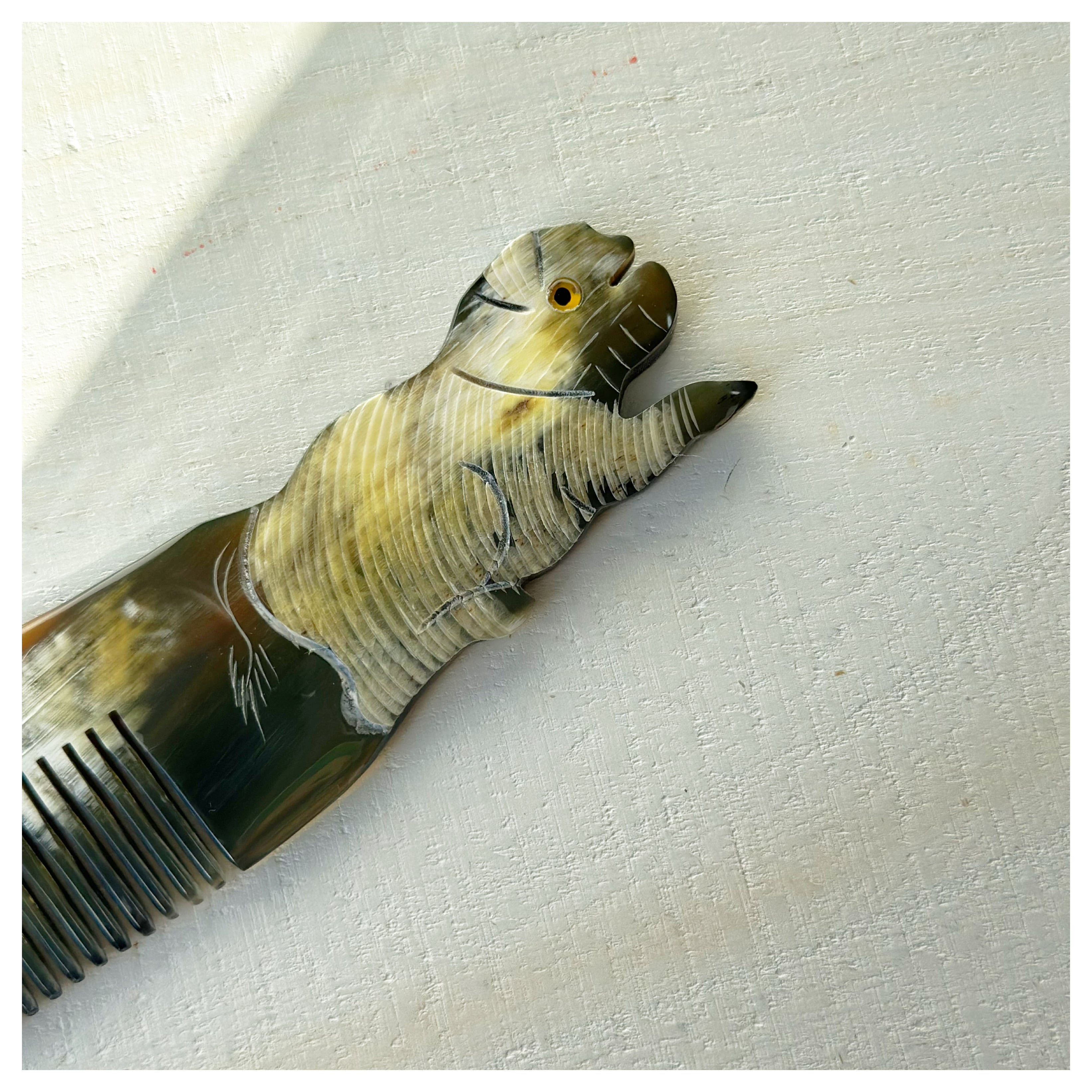 水牛角 バッファローホーン 鼠の彫刻 くし