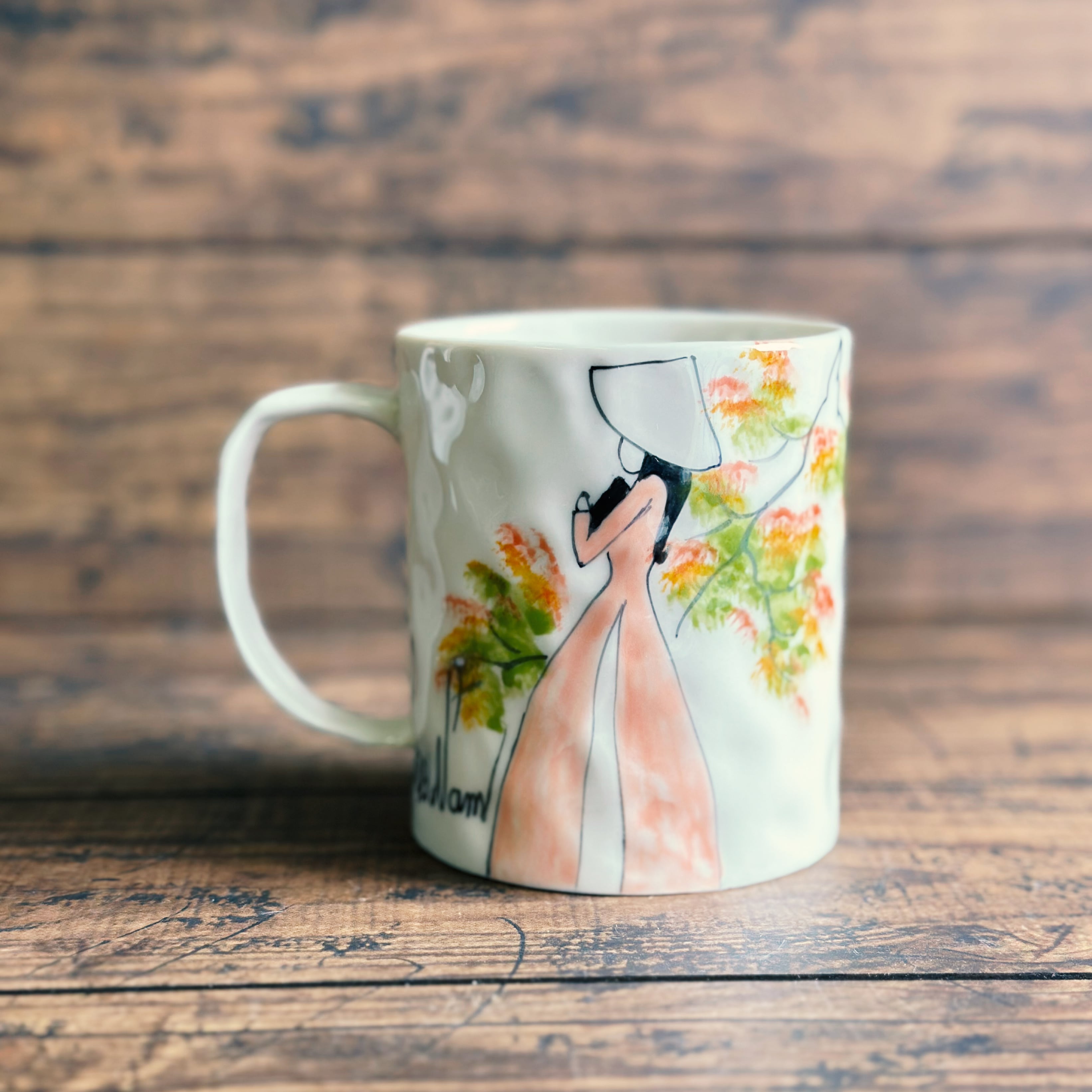 ベトナム バッチャン焼き マグカップ アオザイ ノンラー ピンク