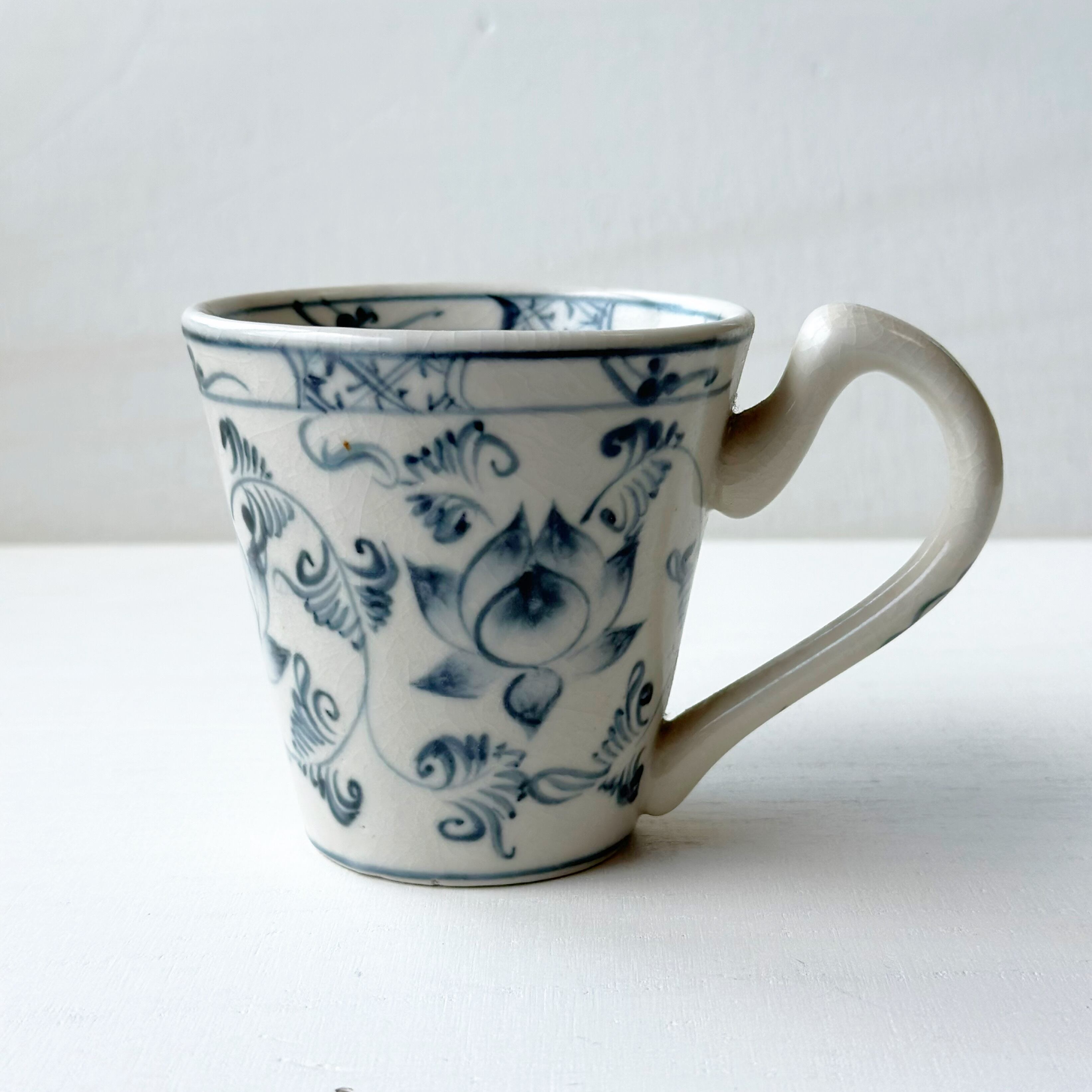ベトナム雑貨 バッチャン焼き 蓮絵のマグカップ