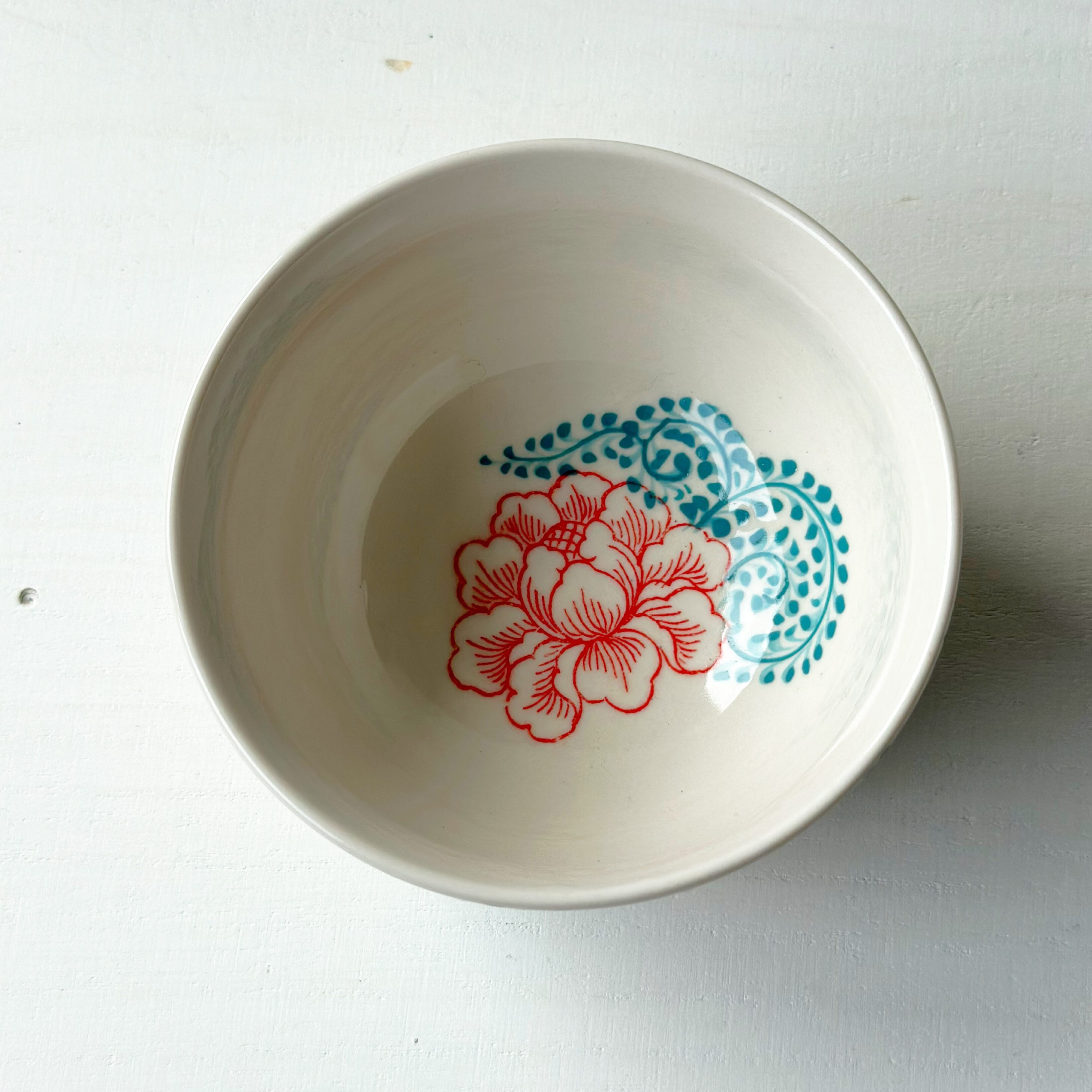 ベトナムのバッチャン焼き 牡丹柄の茶碗