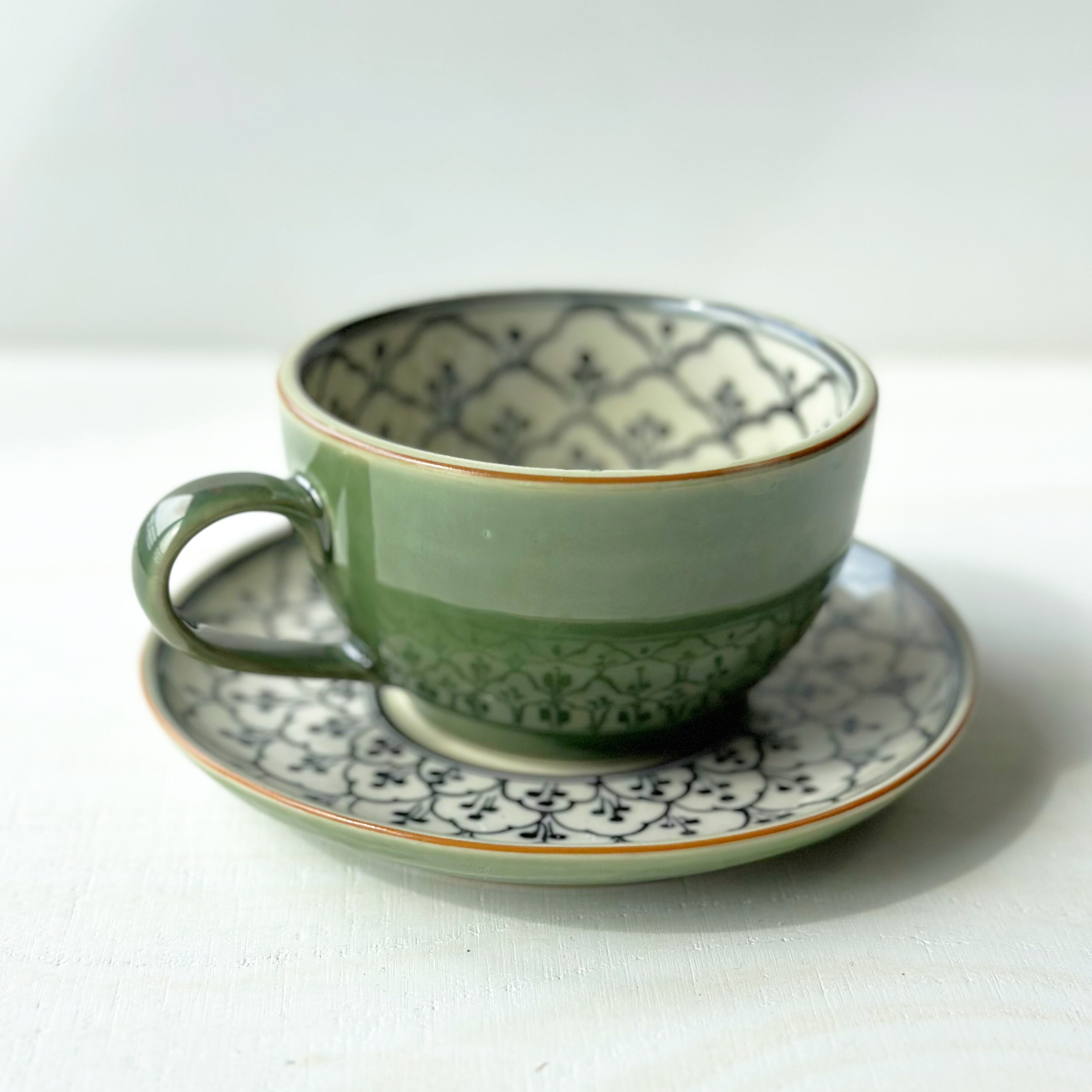 バッチャン焼きは、首都ハノイから車で30分ほどの場所にある人口約5,000人の村「バッチャン村」で作られる陶器。14世紀頃から始まったといわれ、600年以上の歴史を持つ。中国陶器の影響を受けながらも、自由でのびのびとした独自の作風を確立。「バッチャン焼はろくろを回すのではなく、粘土を型に流し込み、上から圧力をかけて成形します。身近にある自然を描いた素朴なデザインが特徴です」