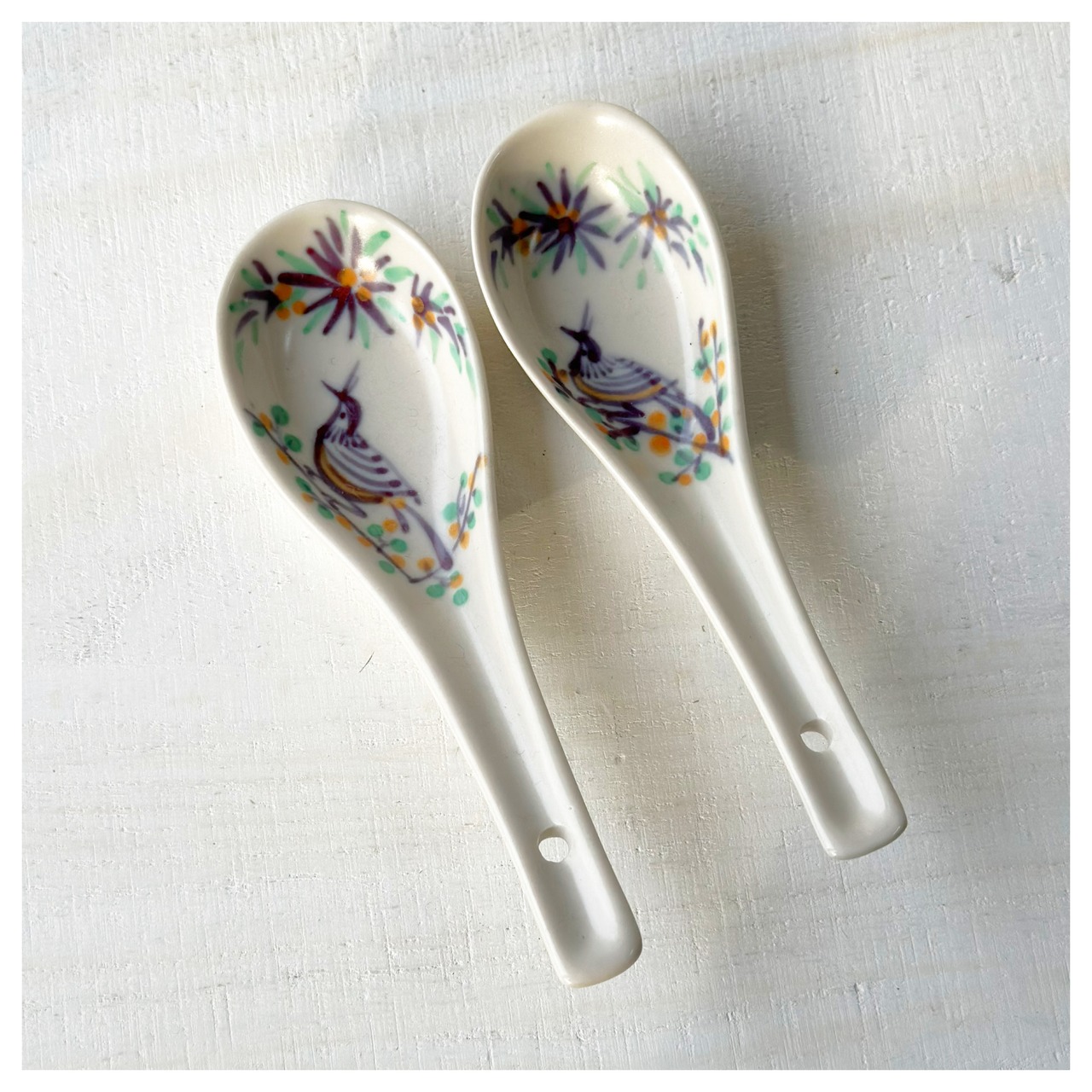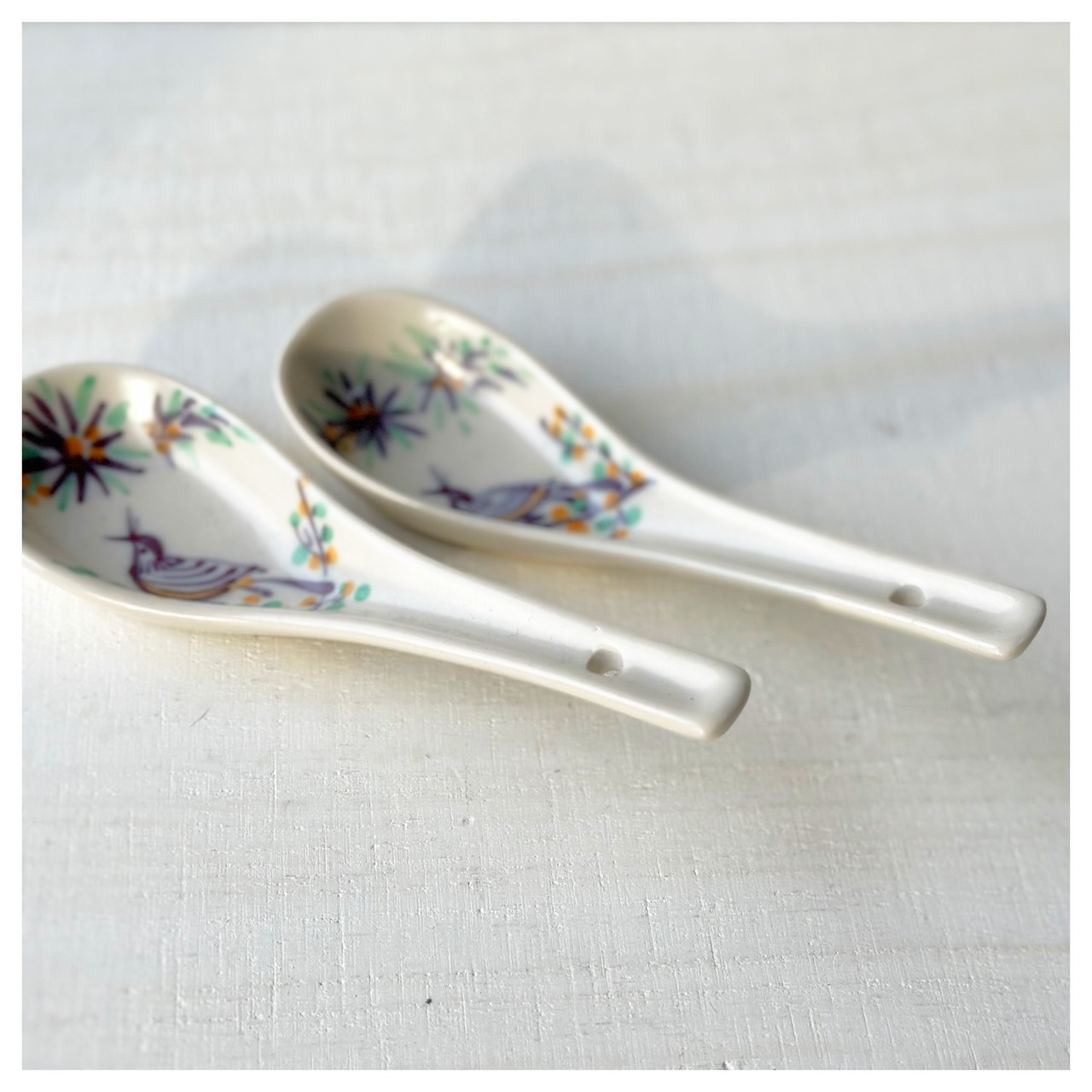 ベトナムのバッチャン焼き 小鳥の絵柄 レンゲ2本セット