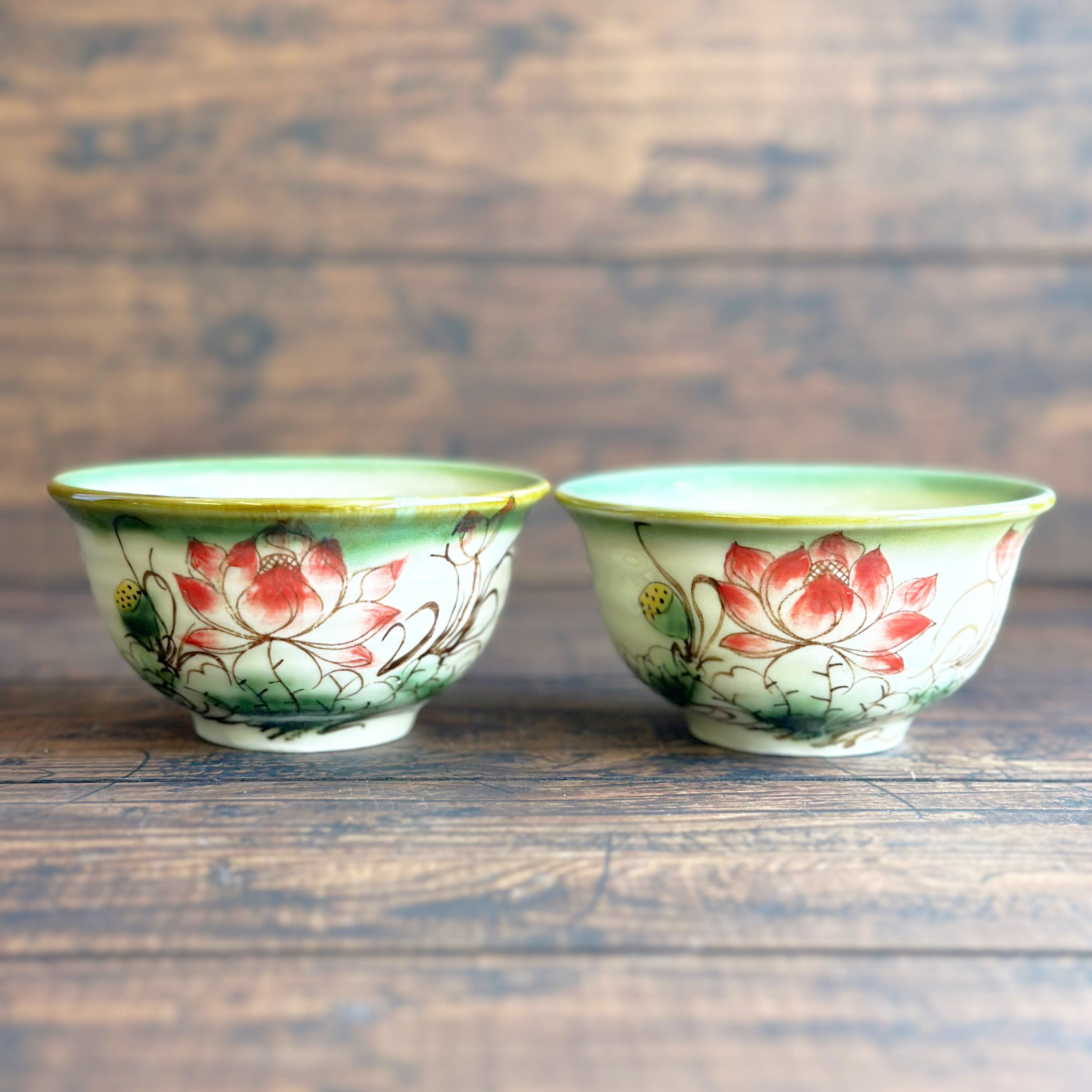 ベトナムのバッチャン焼き 蓮絵の小鉢2枚セット