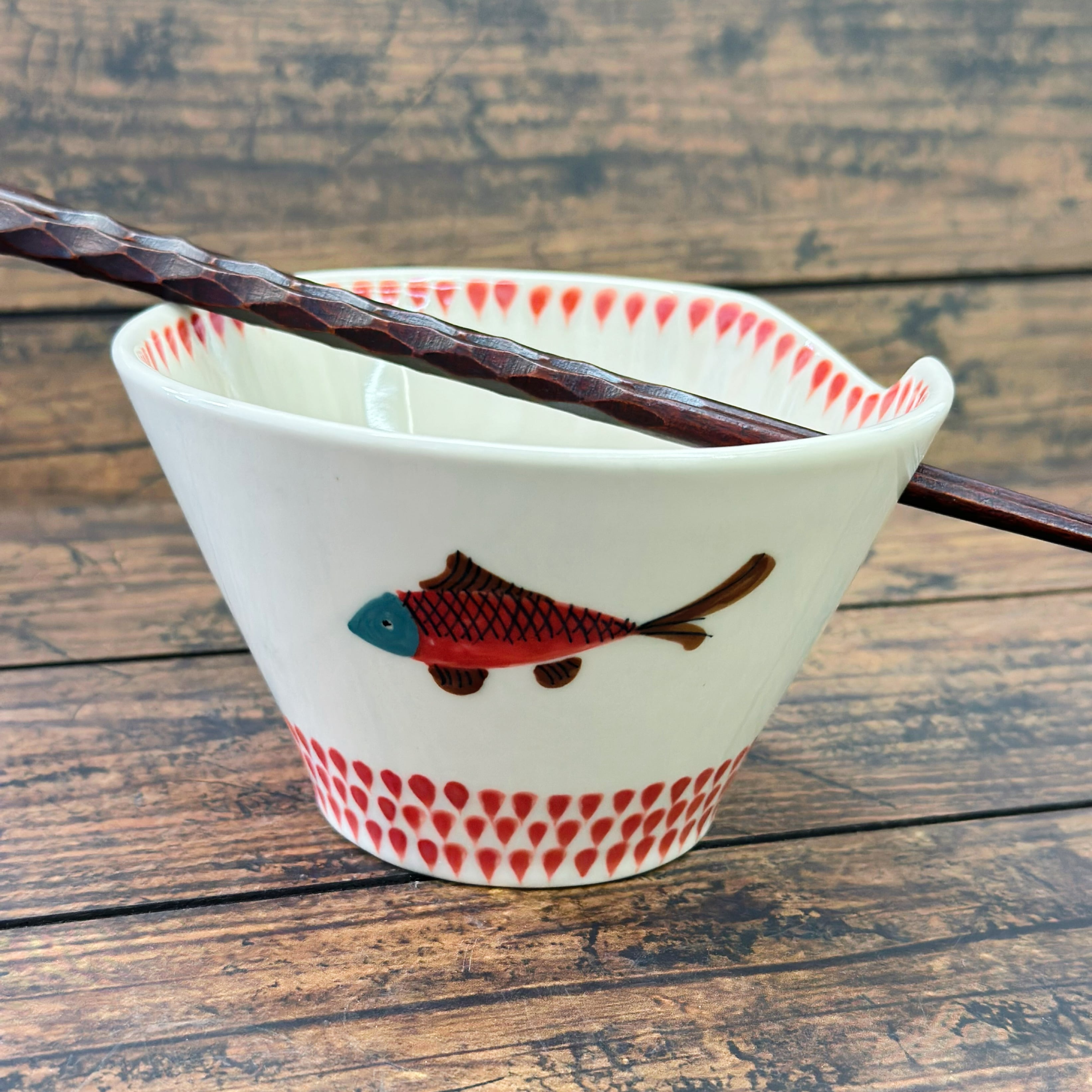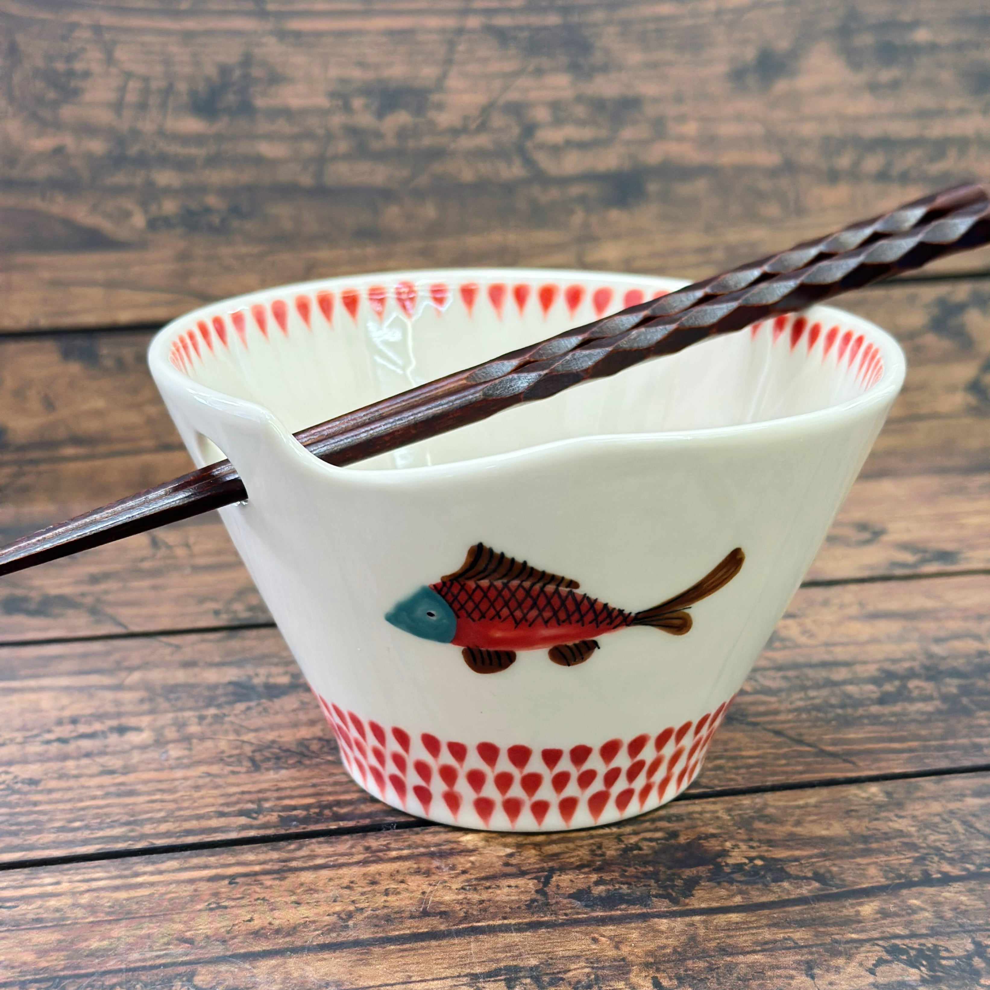 ベトナムのバッチャン焼き 魚柄の箸穴がある丼
