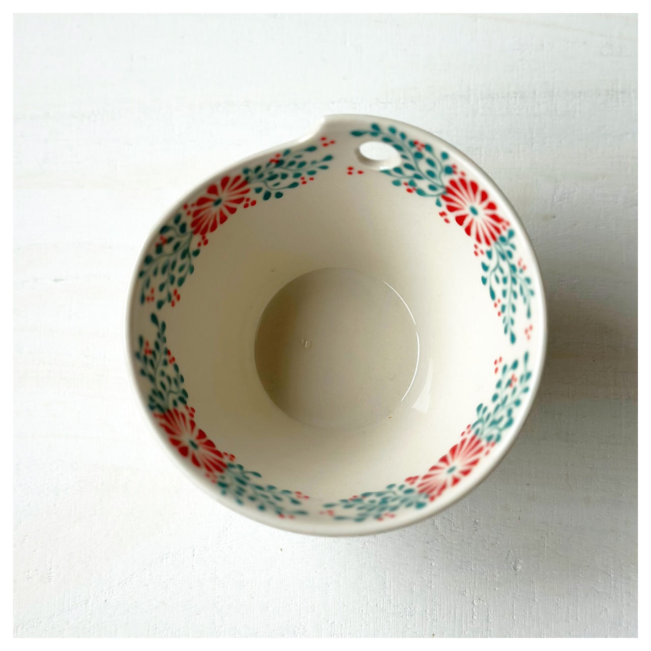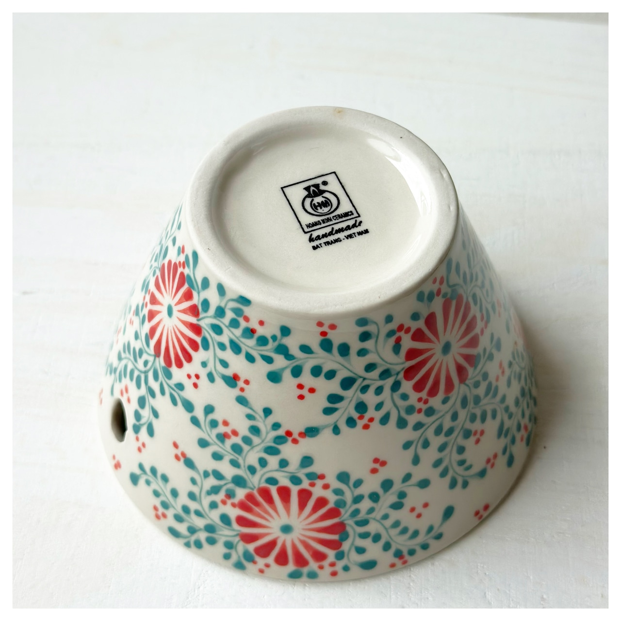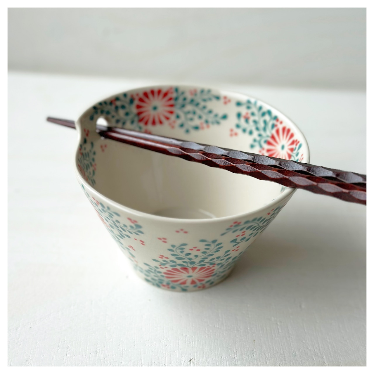 ベトナムのバッチャン焼き 菊柄 箸穴がある丼