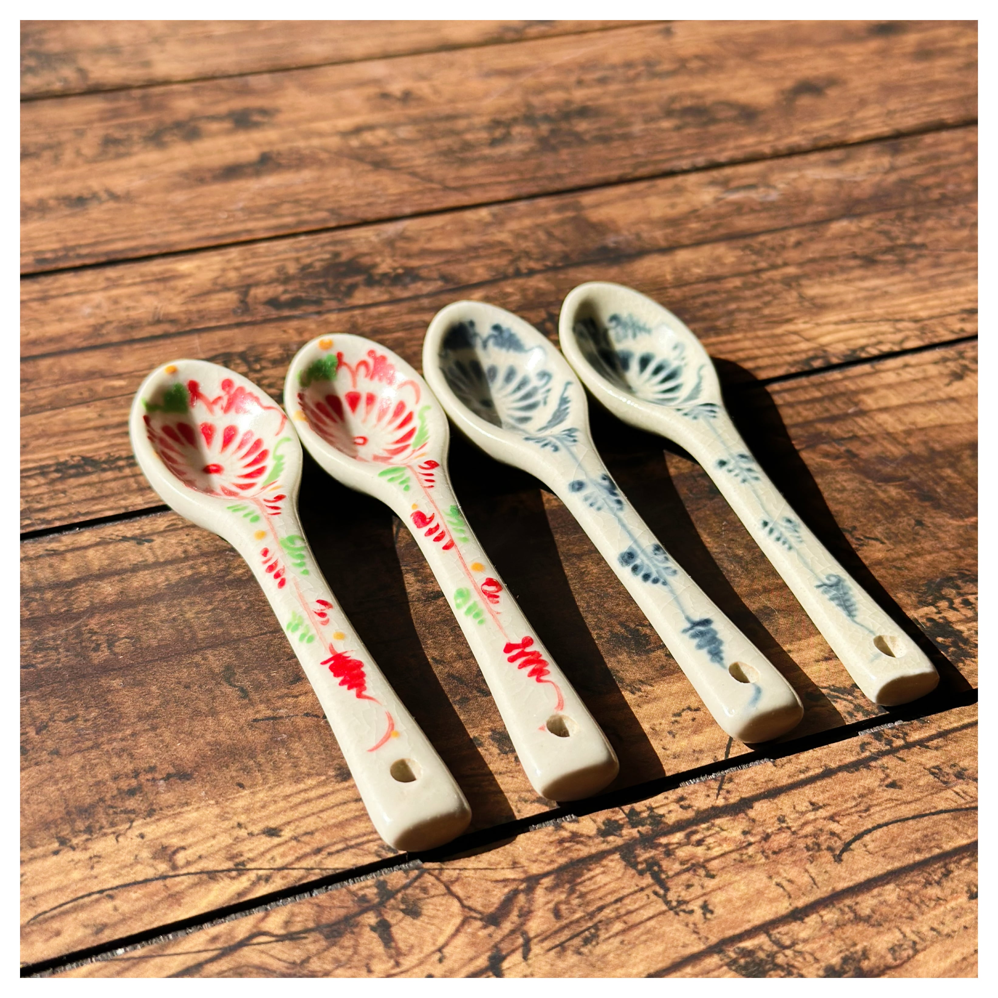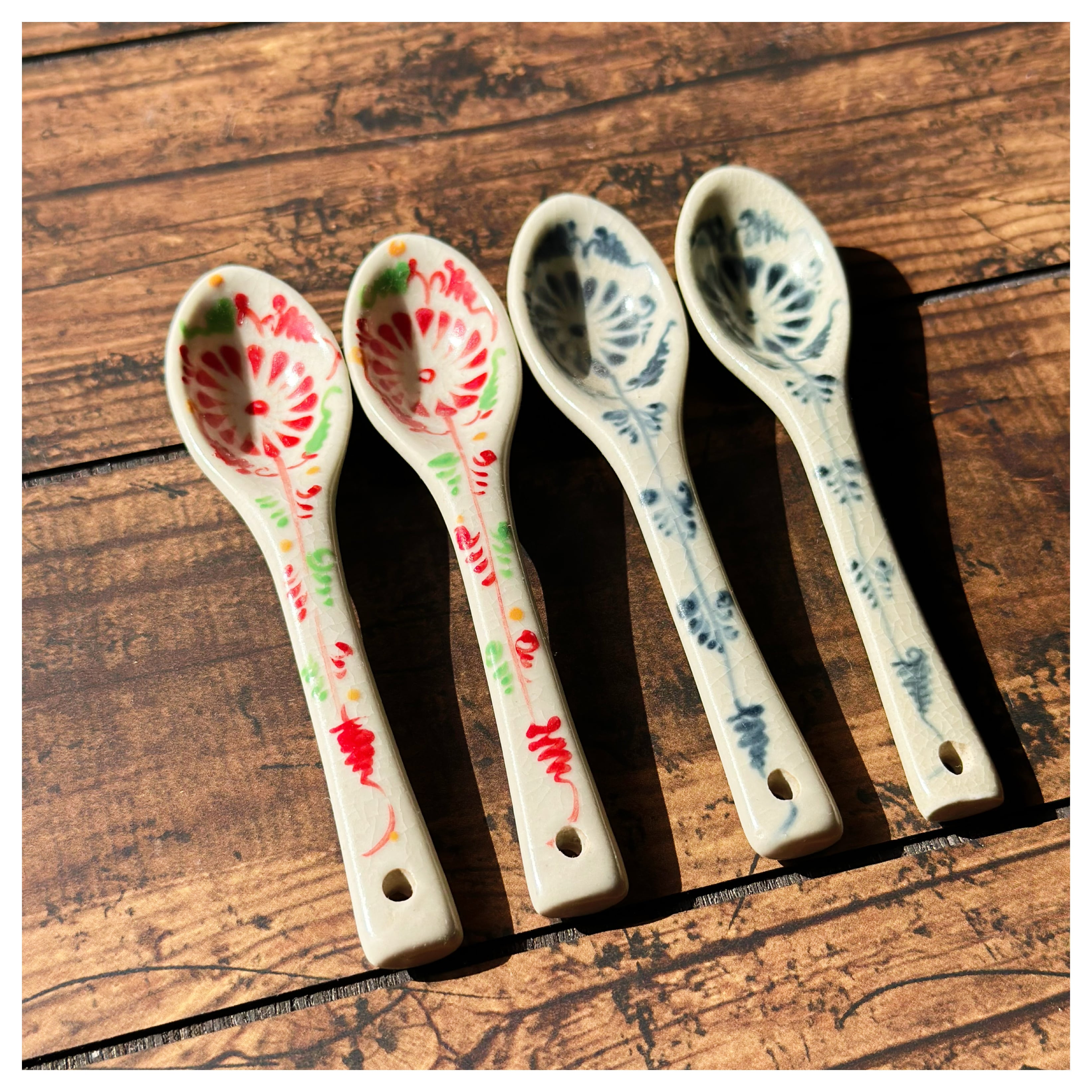 ベトナムのバッチャン焼き 菊絵のティースプーン4本セット